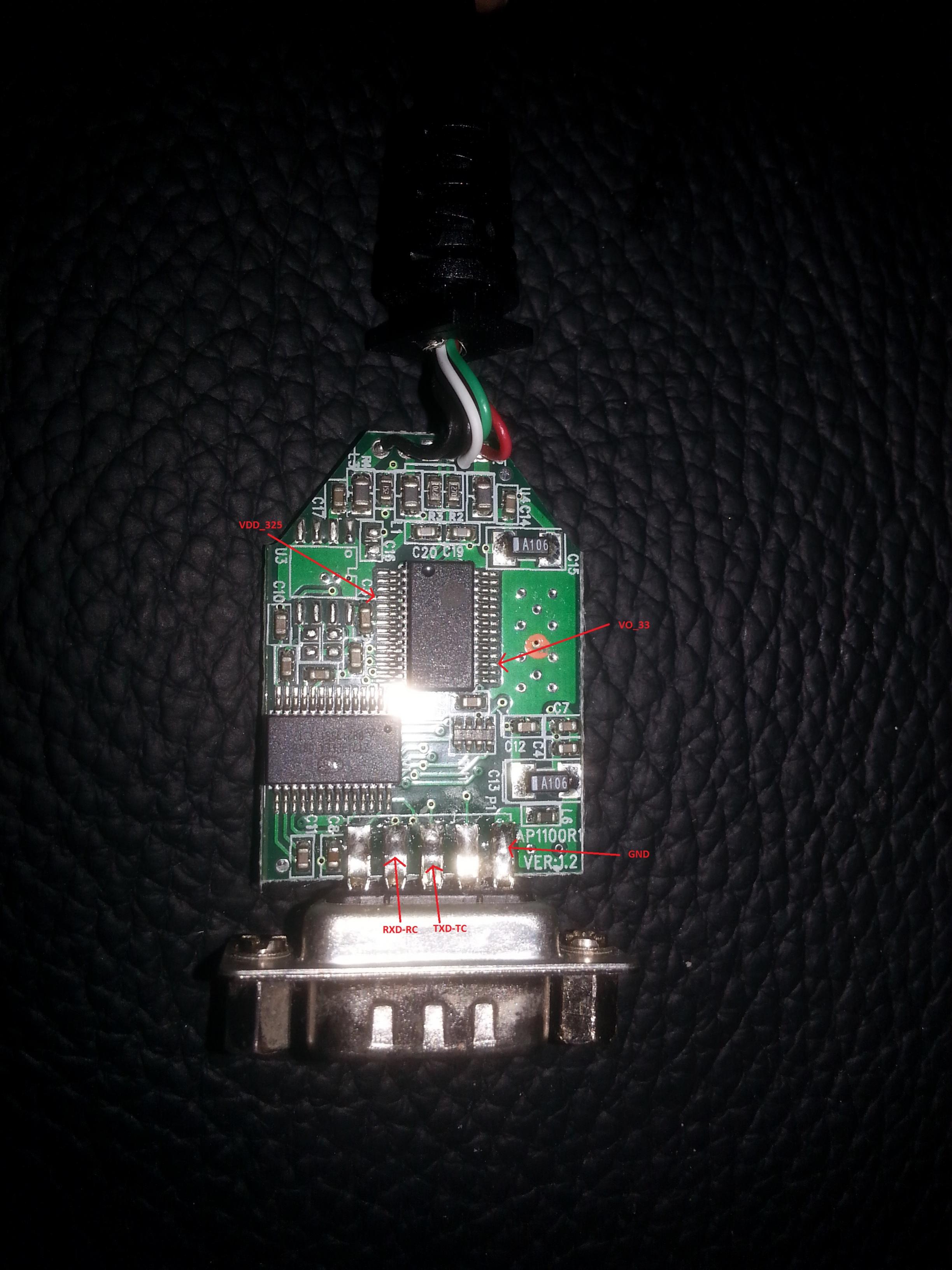 I am trying to re-use an old serial-USB cable I have lying around to interface with my KT2 Basic (which I have properly bricked, doh!) The adapter I have is the AP1100R1 v1.2, which has a PL2303HXD chip. The nice thing about this chip is that the VDD_325 on pin 4 supports a variable input: Quote: