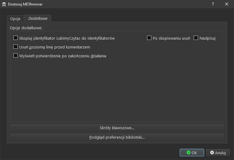 LubimyCzytac is a Polish website similar to Goodreads. Although the plugin interface is also available in English, the website is only in Polish. For that reason, this plugin will be of most use for Polish readers. This plugin uses LubimyCzytac.pl as a metadata source. The original author's description: Spoiler: