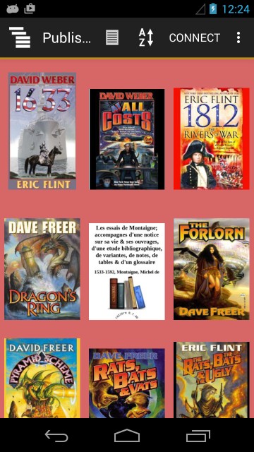 I am not sure what you mean by "shelf". Do you mean CC's cover view, like this? Or do you mean CC's list view, like this? If you are seeing the list view and want the cover view then you must tap the "cover view" icon on the action bar (the 4 small squares marked in the second image). From what you say I suspect that you are using the Cloud Connection with Dropbox. The Cloud Connection supports a hierarchical list view of books. In this connection the only thing you can do with a book is download it to CC's library so it will appear in the two views shown above. You download by long-pressing on a book, by tapping to get book details then choosing "Download", or by selecting the "Download all" menu option to get all the books in a category. Once you have downloaded as many books as you wish then you "Disconnect", which will take you to CC's library manager, where you can use the cover or list views. You can use the grouping drawer to select subsets of books. And you can launch a reader app. If you want to browse Dropbox using a cover view then CC isn't your app. The reason: CC is designed to be offline as much as possible so it can be used when roaming or somewhere that has no service at all. It goes online only when you ask, using one of the connection types, in order to put books into its offline library. While online it uses a "tree" view, which seems to be what you are describing. Other apps stay online permanently and can show dropbox libraries in a cover view. If you bought the wrong app then you can ask for a refund. As for having a "huge" library: many people keep their entire library in CC, where the "entire library" is thousands of books. The largest library we have seen is some 35,000 books. Many people have libraries of around 10,000 books. Last edited by chaley; 02-09-2017 at 08:18 AM. Reason: grammar |