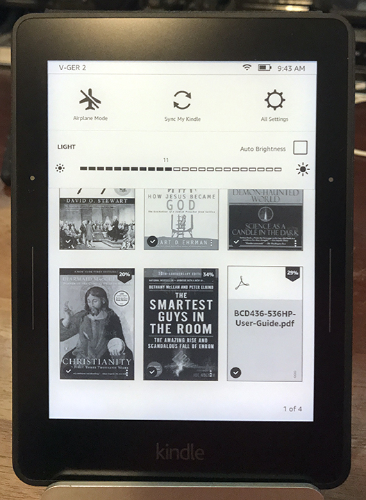Device: Kindle Voyage, Samsung Galaxy Tab 10.1 (for PDFs)