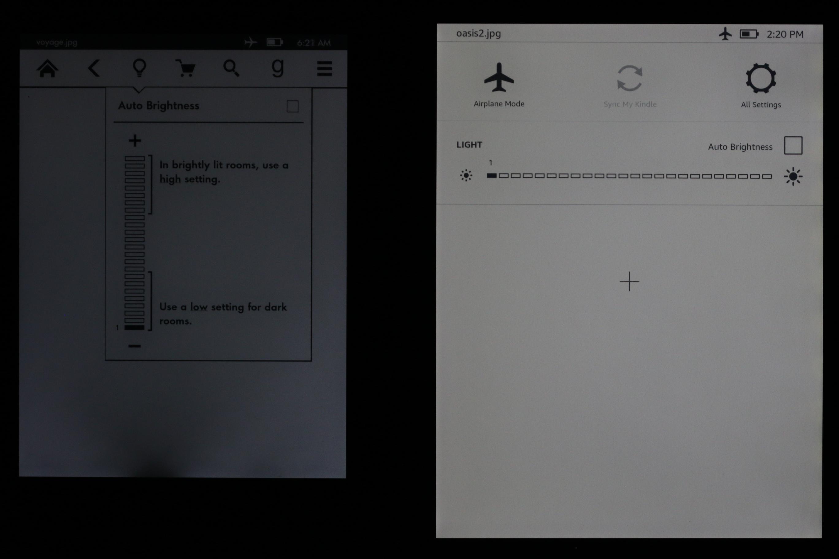 Oasis 2 vs Voyage dark room screen comparison