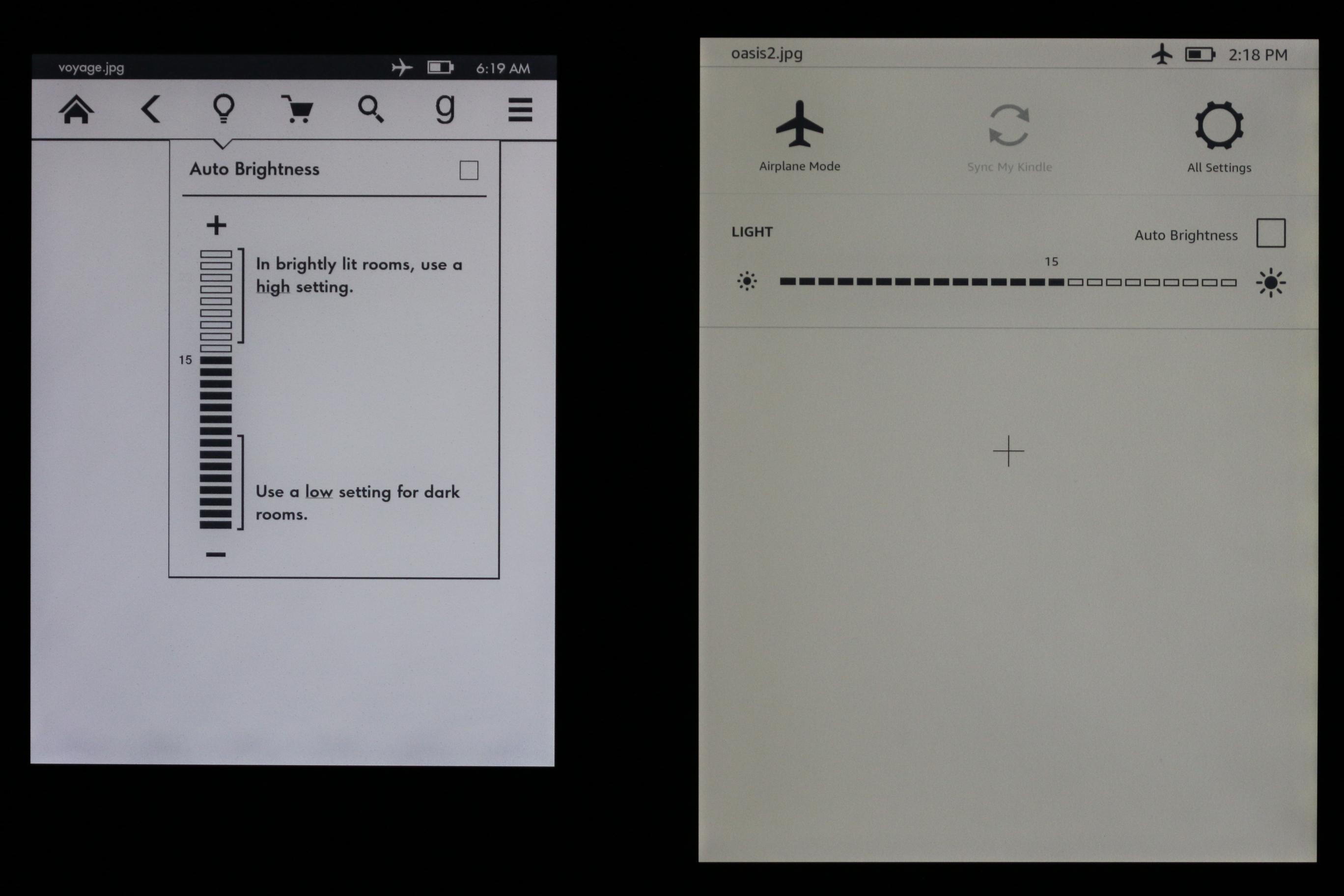 I'm surprised as it looks like the (second) lowest brightness of Oasis is much higher than voyage. I often read on lowest setting on my paper white, and if I can't go so far down on Oasis anymore, it would be a bummer. Would you be able to do the same comparison between Voyage and Oasis in inverted mode, for the lowest brightness settings? |