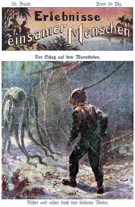 Trotz der frischen Brise lagerte über dem Deck des kleinen Schiffes eine sengende Hitze. Schwerfällig, von keiner kundigen Hand in den Wind gebracht, taumelte der Schoner wie ein Trunkener umher, fortwährend eine unregelmäßige Zickzacklinie beschreibend. Und in die Hitzewellen, die die unbarmherzige Sonne über das verödete Deck sandte, mischte sich ein widerlich süßlicher Verwesungsgeruch, der von den Leichen zweier Männer ausging, die dicht vor der Tür des am Heck befindlichen Kajütaufbaues lagen. Auch neben der Vorderluke ruhte regungslos eine Gestalt, die eines älteren, graubärtigen Mannes, des Eigentümers und Kapitäns der „Marie“ Johann Steffen. Die Gesichter der drei Toten waren fast braunschwarz und boten einen Anblick dar, der auch einen nervenstarken Menschen erschüttert hätte. Walther Kabel schreibt hier unter dem Pseudonym W. Belka Abenteuergeschichten von Auswanderern und Verschollenen, die sich an junge Erwachsene wenden. Text und Cover stammen von der Walther-Kabel-Seite, vielen Dank nach dort. Die Geschichte wird in Band 21 fortgesetzt. This work is assumed to be in the Life+70 public domain OR the copyright holder has given specific permission for distribution. Copyright laws differ throughout the world, and it may still be under copyright in some countries. Before downloading, please check your country's copyright laws. If the book is under copyright in your country, do not download or redistribute this work.