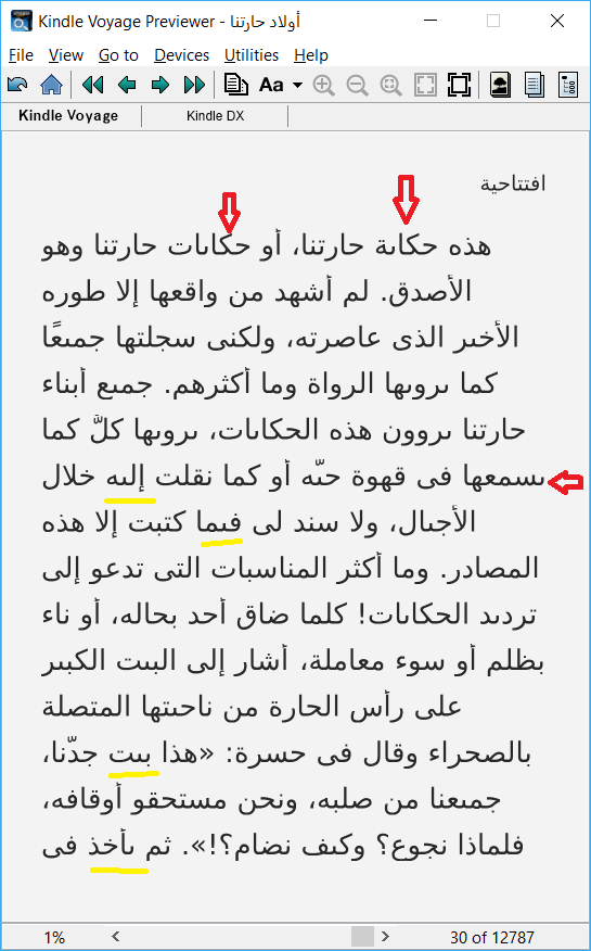 I try to convert this epub file to mobi (or even azw3) but the books will loose some lettrs when I open it with kindle ... (it will be ok with calibre book viewer) if I remove the embedded fonts it will be the same issue in both (pc viewers and kindle) so I thing the issue is maily because of the embedded fonts that kindle may not support them. I will appreciate any hint please. regards Last edited by Dr. Drib; 12-22-2017 at 01:25 PM. |
