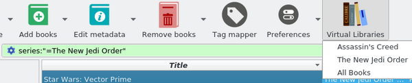 Makes switching between virtual libraries much faster. I made this because I couldn't find any other plugin that allows quick switching between virtual libraries from the toolbar. I was a little surprised by this. The Calibre manual specifically recommends using virtual libraries to organize large numbers of books, so switching between them should be as simple and quick as possible. I used the library icon from Calibre itself as the plugin icon. I'm fairly new to python (I've always been a C/C++ kinda guy), so if anyone spots any bugs please post them. I'm also new to Calibre and MobileRead, so I don't know who the admins are, so I don't know who I'm supposed to PM for a new plugin to add it to the list. Comments and suggestions are welcomed. |