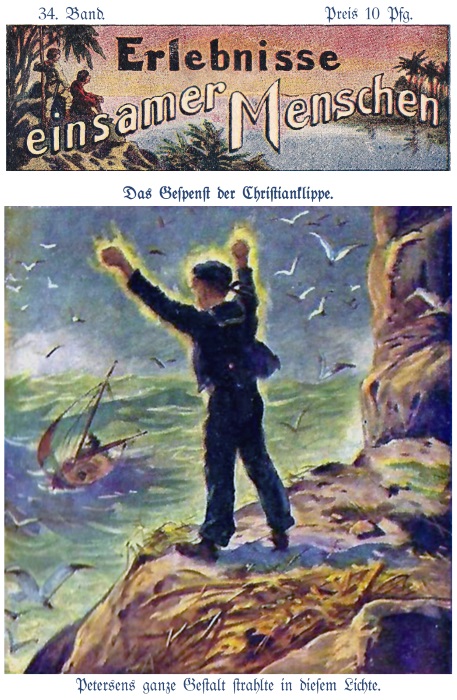 Harald Mogenäs’ Kutter, der dicht an dem steil abfallenden Felsufer des Fjordes festgemacht hatte, an dem das kleine Dorf Kalsöe, das einzige auf der gleichnamigen Insel, mit seinen bescheidenen Hütten und dem armseligen Holzkirchlein liegt, war bald von einer Schar Neugieriger umlagert, die von der Uferhöhe aus auf das Deck des plumpen Segelbootes hinunter starrten, wo der Fremde in seinem Ölanzug regungslos auf einem Lager von Ersatzsegeln ruhte. Inzwischen hatte der älteste der Söhne Harald Mogenäs’, der stämmige Olaf, den Strandvogt Kolter, der zugleich Dorfoberhaupt von Kalsöe war, von der Bergung des Schiffbrüchigen benachrichtigt. Als Kolter erschien, machte man ihm ehrerbietig Platz. Der Vogt schritt würdevoll die in den Uferfelsen eingehauene Steintreppe abwärts und betrat den Kutter, wo ihm der alte Fischer kurz berichtete, wo und wie man den fremden Seemann aufgefunden habe. Walther Kabel schreibt hier unter dem Pseudonym W. Belka Abenteuergeschichten von Auswanderern und Verschollenen, die sich an junge Erwachsene wenden. Text und Cover stammen von der Walther-Kabel-Seite, vielen Dank nach dort. This work is assumed to be in the Life+70 public domain OR the copyright holder has given specific permission for distribution. Copyright laws differ throughout the world, and it may still be under copyright in some countries. Before downloading, please check your country's copyright laws. If the book is under copyright in your country, do not download or redistribute this work.
