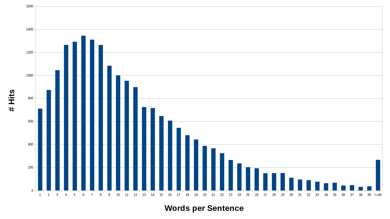 and point out any other interesting stats that appear. Words/Characters per Sentence For example, I could compare Words per Sentence across a series: Brandon Sanderson's epic fantasy series, Stormlight Archive books (Books #1-3): Another epic fantasy, Robert Jordan's Wheel of Time (Books #1-3): George R.R. Martin's A Dance with Dragons (Book #5 of A Song of Ice and Fire): Or a popular science fiction book, Andy Weir's The Martian: Top 50 Words to Start a Sentence Or take the first 3 books in the Wheel of Time: Code: