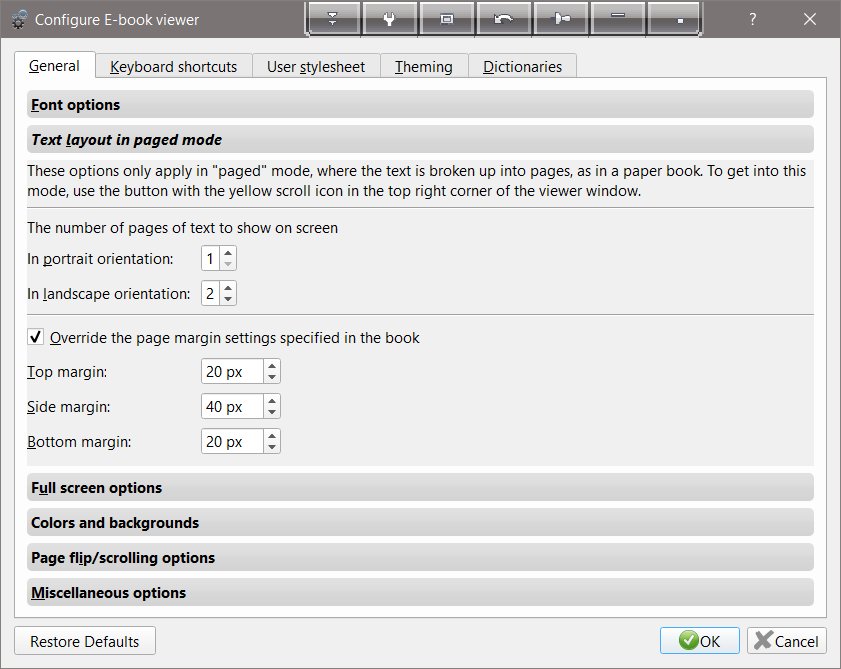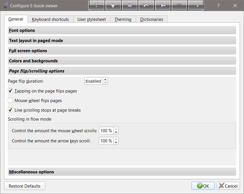 I am using Calibre to read ebooks on my pc and in the reader when i press spacebar it flips the pages horizontally. Is there a way to change that, so when i press the spacebar to flip pages vertically?