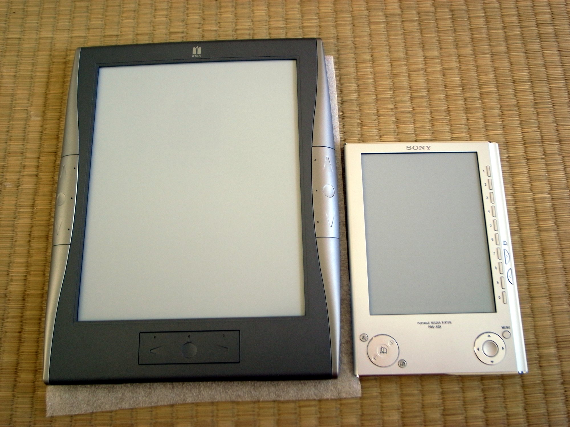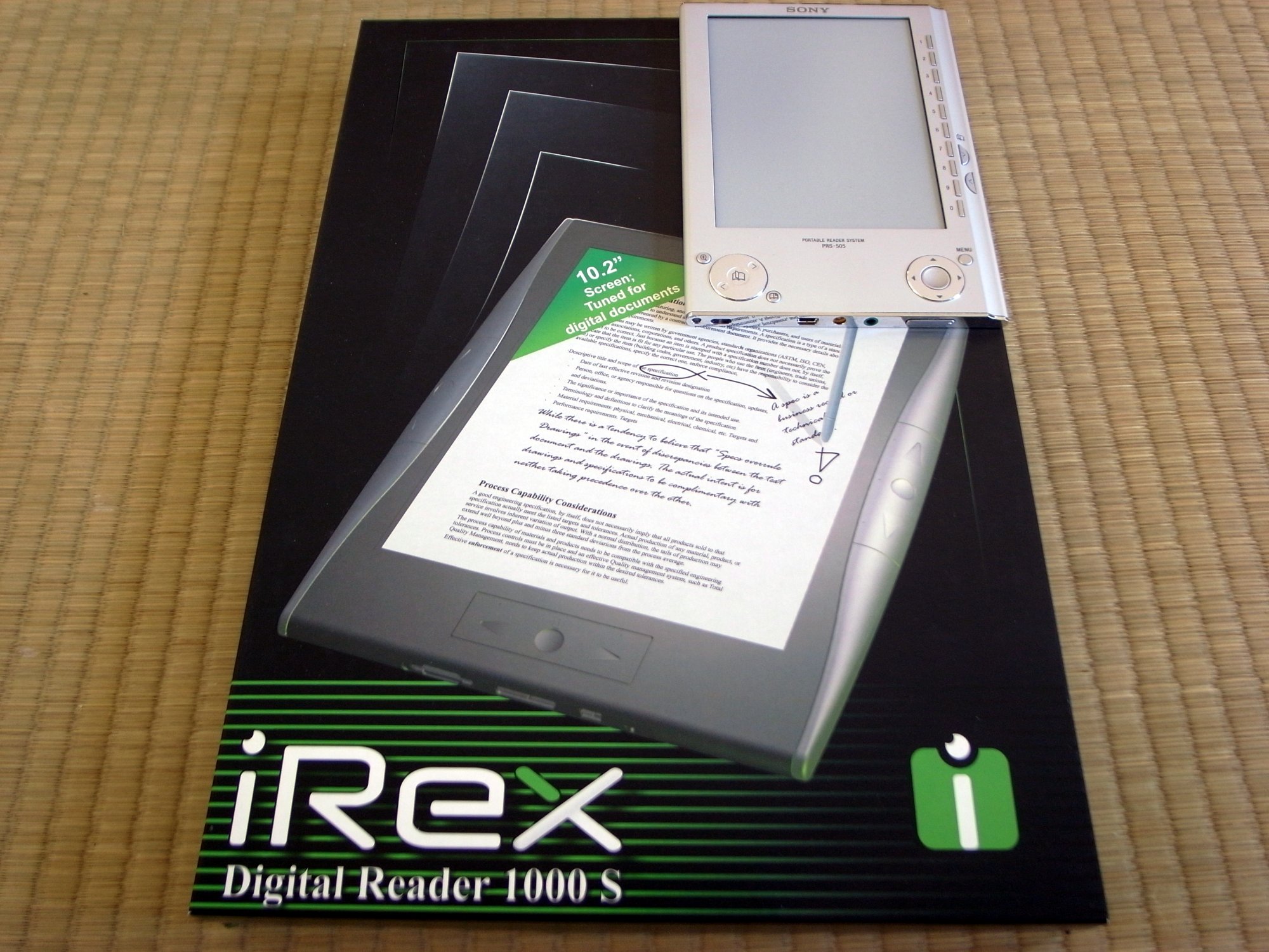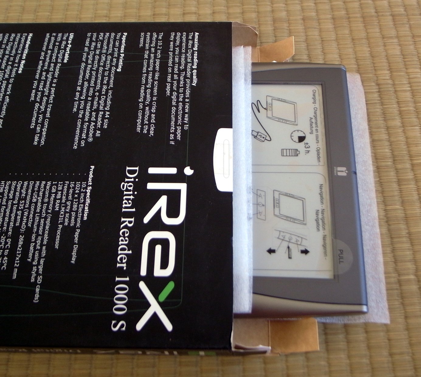 I ordered the DR1000S and Deluxe cover from eReader Outfitters and the accessories from iRex directly. Through some coincidence, they arrived together (good thing, since the Deluxe cover is not available... yet) If the DR1000S is big, the (cardboard) box is gianormous ^_^; It came with a "Reader 101" sticker covering the screen, and still had enough charge left for me to play around with. It's certainly the snappiest e-ink reader I have used, esp. with PDFs (not that I have any love for that format, on the Sony the newly-introduced oddball reflowing just isn't much good...) It has so far opened every file I have thrown at it, the first time you opened it it may take a while, but after that it's much faster. As an avid comic/manga fan, it is nice to just throw a folder of uncompressed images on there (no compressed folders yet) and read away, fast and almost always without scaling since most images are in the 1100-1200px height range. Add to that the fact that this screen uses 16 grayscales on top of the high resolution and a PROPER FULL SCREEN MODE and the result is simply outstanding, even for photographs. The Screen is slightly lighter than my Sony, maybe it's the actual e-ink tech or maybe it's because my Sony is older... in practice it doesn't make much of difference though. The weight is perfectly OK, but in bed I'll continue reading on my Sony because of the small size and the added light. The cover is nice and solid, even though the fake leather is easily scratched. Inside there is space for the pen on top (the elastic bands are two sizes, presumable to fit either pen), space for some creditcard (or the much needed reset-paperclip in my case -_-) and some paper behind it. For some strange reason the iRex logo is on the BACK (?) so I tend to open it the wrong way... The pen (interface): I still have to get used to the fact it's there at all ^_^ I have locked the right-hand side of the sensor keys since I keep hitting them with my palm while I use the pen. I have included an image of the included pen, the "professional" pen and the current-gen Wacom pen (which doesn't work - not the same tech) The Pro pen is very comfortable and has at least one button (which isn't used yet, like the eraser on the back) Sketching is pretty much out (I had some hopes for that) It's too slow, but I'm not entirely sure it is strictly due to the screen tech. Weirdly enough, it's all vector based (like Flash or Illustrator), and not a plain bitmap sketching app (like Photoshop or Gimp) It is clearly visible when you use the eraser: it erases entire lines at once, rather than the area you rub on. This also explains the absence of pressure sensitivity and grayscales (it seems the reader has enough trouble keeping up with drawing a fixed-width black line) I hope they will either change it, or there will be a sketching app at some point. I think the hardware is capable enough. The interface in general works pretty well for me. I too get thrown off because the bottom sensor pad central button is ALWAYS the menu button and not an "Enter" key like the other ones. That is true in landscape format too, whichever "side" becomes the bottom, also becomes the Menu button. The PC software is useless, as in -not working at all as described-, but also as in -superfluous-. I still have to figure out what good the "My iRex" account is, maybe once the functionality is fixed in the software. Last but not least, some screenshot of the SDHC card issues (they mostly work, but you can't format them on the device) The "setup card" works as well, but as others have pointed out, that does not include the large files on the original card (PC software, Manuals) Download these directly from iRex if you accidentally deleted them. Charging: Despite the huge price tag, no charger... bleh. I have successfully used my Garmin USB charger (for their GPS devices) It's very compact and comes out of the box with most international plug adapters, which is really nice. I think that's enough for now. Ask away. |