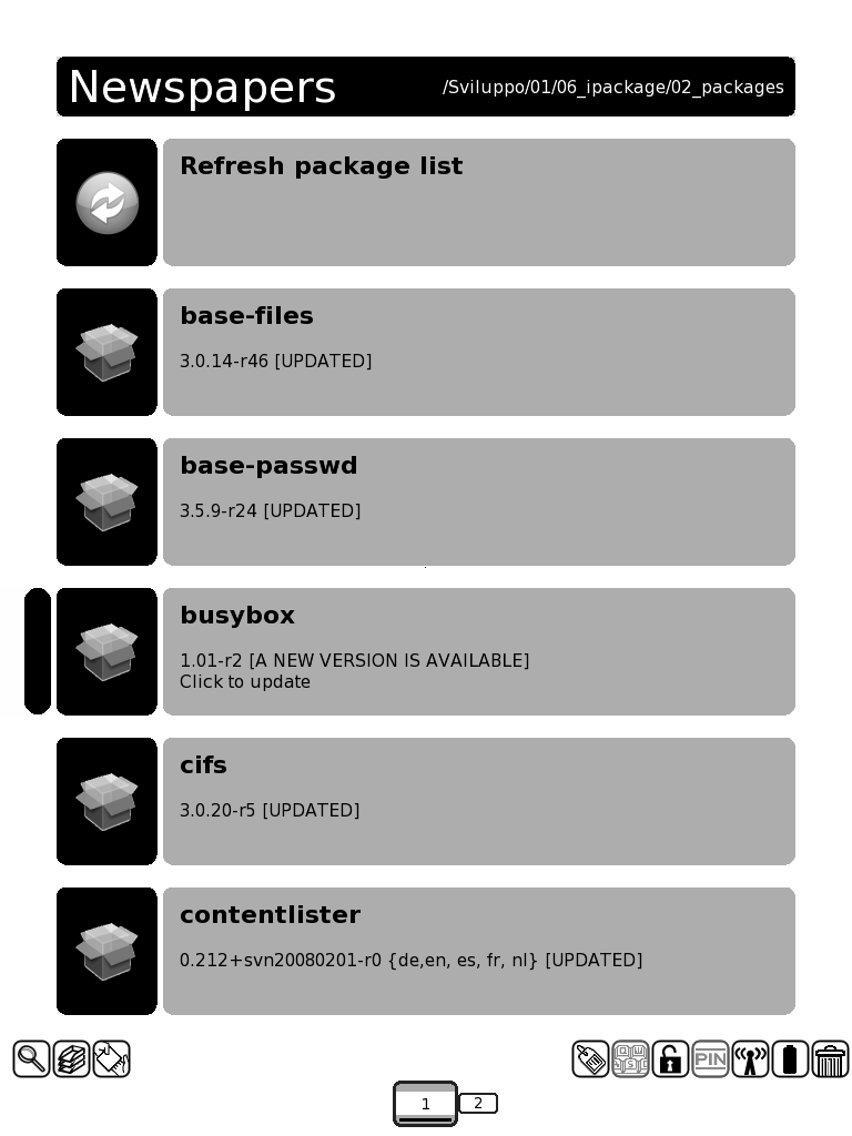 I think that if we were to build a graphical front end to search and view packages, it should use the iLiad's own graphical interface. |