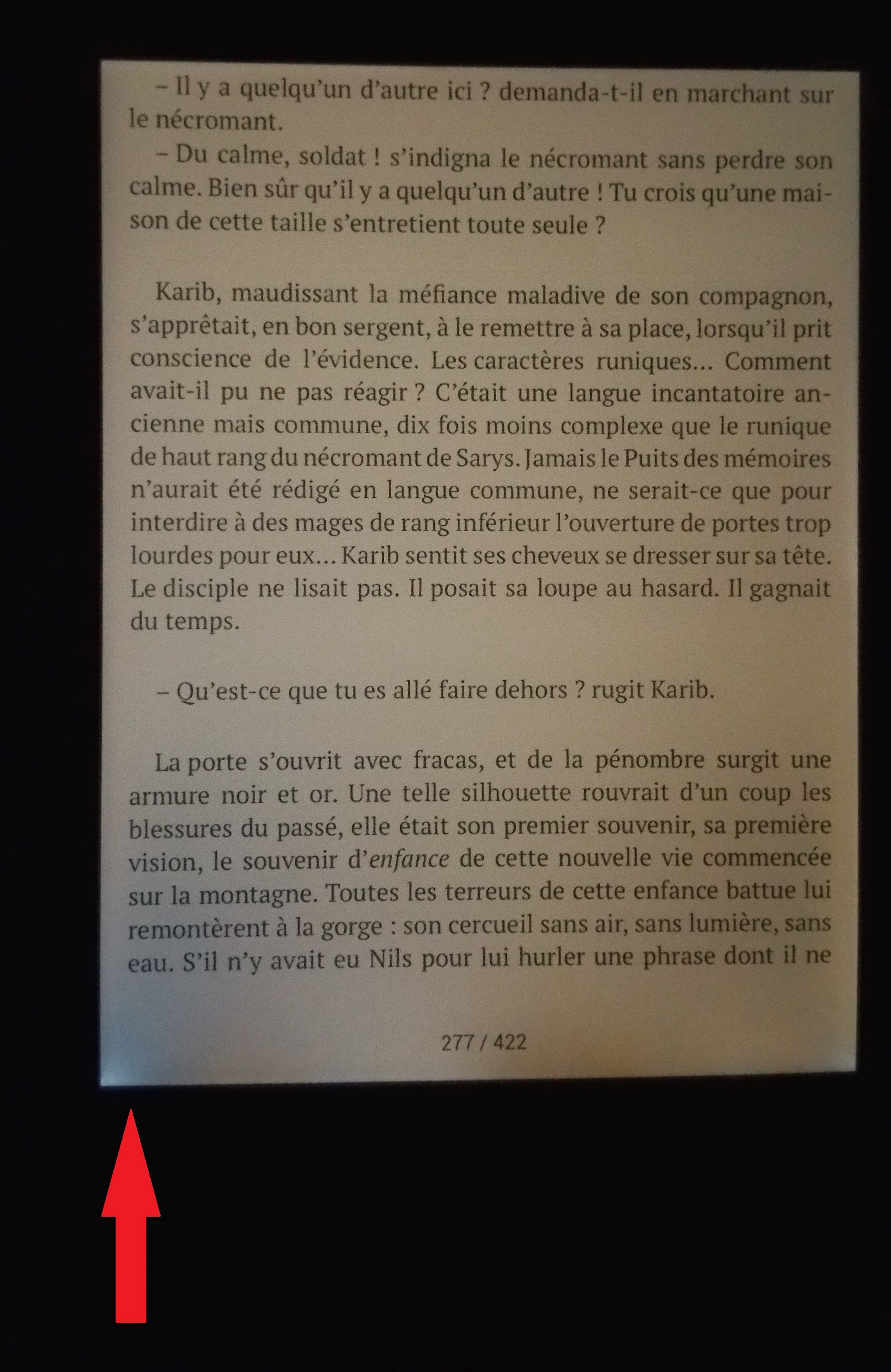 Il y a deux jours j'ai reçu ma nouvelle liseuse pocketbook inkpad 3 et le soir en lisant dans le noire avec le rétro éclairage je remarque en bas à gauche (un spot lumineux) comme si une led blanche était plus forte que les autres et quand j’enclenche le smarlight sa me fait un halo blanc très désagréable alors que le reste de l'écran est (orangé), j'ai donc contacté le service clientèle pocketbook avec photo à l'appui il m’ont répondu que c’était une particularité lié à la technologie eink Est ce que quelqu'un à déjà remarqué ce genre de chose sur une inkpad 3? ma liseuse tolino vision hd n'as pas se problème.Merci d'avance. |