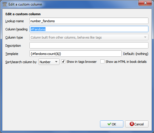 I've added screenshots for all the columns involved. I think I would prefer this solution: If the count of fandoms is more than 2, have the template put the story in a folder called: Multiple Crossovers without adding the fandoms. The rest of it would be like the one I have (it will always end with this): Code: