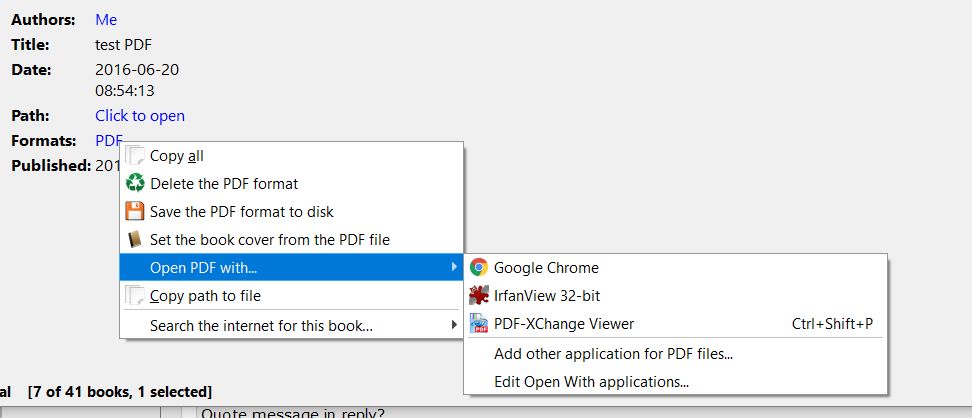 How can I change the default application within Calibre when opening a PDF? Now it opens Adobe Reader, but I would like to open another application. Can somebody let me know how to do that, because I can not find the setting?