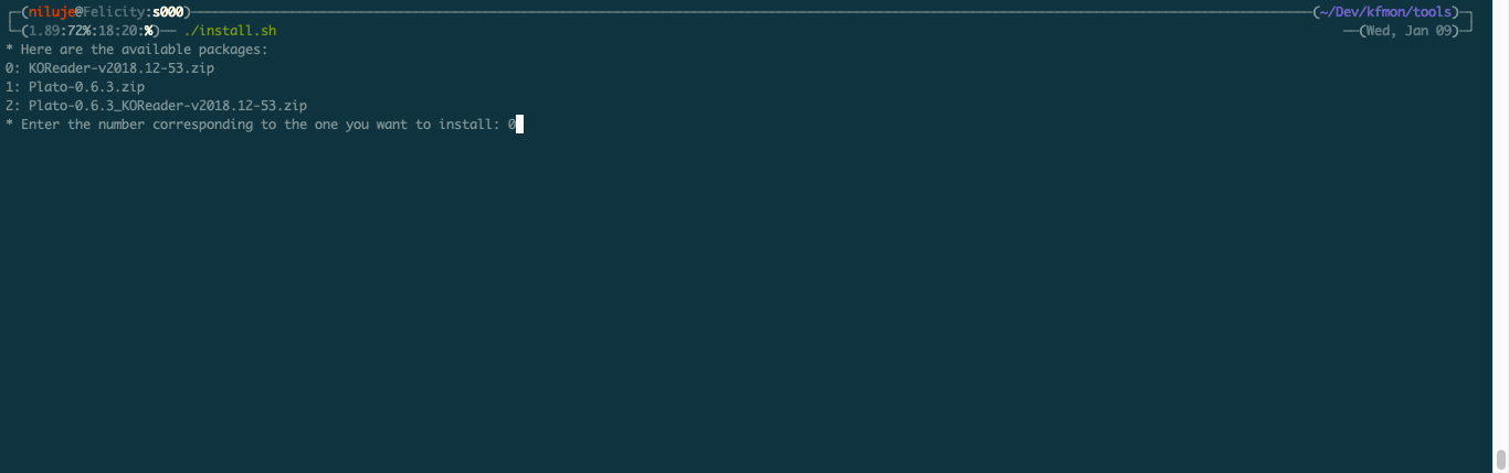 With that out of the way, here's what this is supposed to automate: figuring out where the Kobo is mounted, asking you to confirm what you want to install, and properly unpacking the right archive. This will also automatically prevent Nickel from scanning *nix hidden folders on FW 4.17+. NOTE: Pertaining to that particular bit of trickery, I would *strongly* recommend that you do all this right after a clean, full reboot of your device; and to connect the device *straight from the Home screen*, without touching any documents first! Note that, in addition to the packages in the first post, the scripts also handle KFMon's standalone install package, to quickly restore functionality after a FW update, for instance .Onwards! Windows: