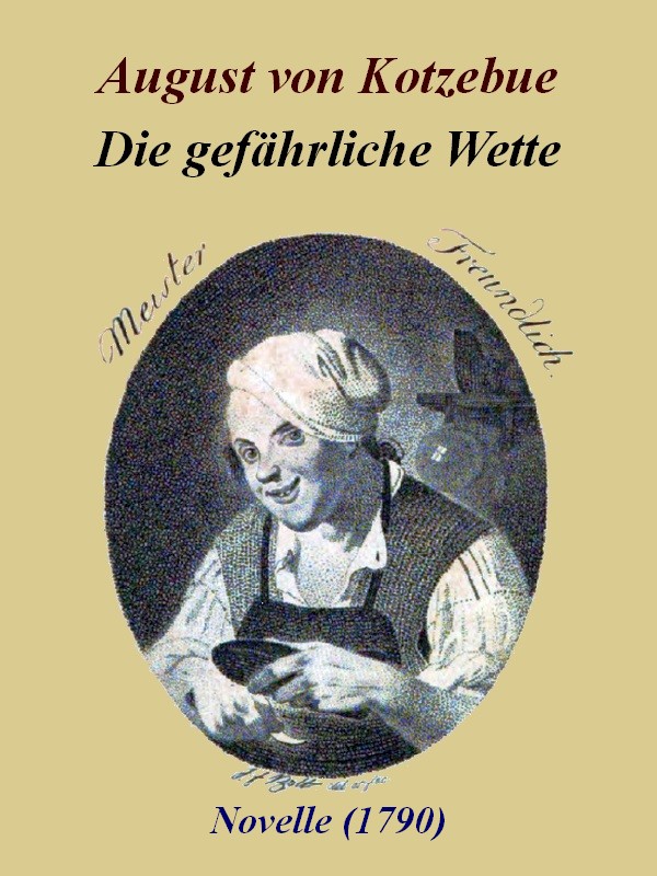 Die gefährliche Wette. Novelle. 1790 erschienen in Leipzig, bey Paul Gotthelf Kummer. This work is assumed to be in the Life+70 public domain OR the copyright holder has given specific permission for distribution. Copyright laws differ throughout the world, and it may still be under copyright in some countries. Before downloading, please check your country's copyright laws. If the book is under copyright in your country, do not download or redistribute this work.