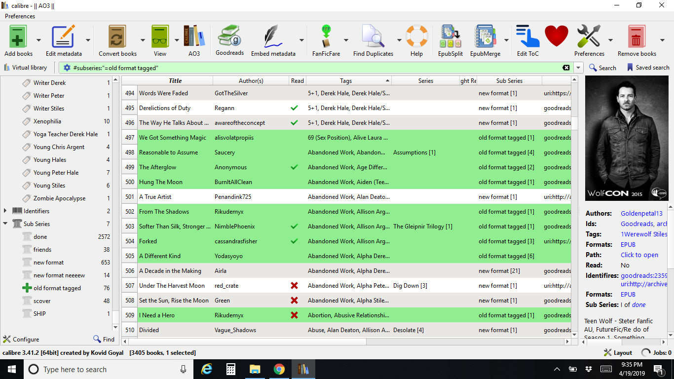 Since I'm re-downloading fanfics I am adjusting the tags. Even the subseries custom column is doing the same thing. On the previous release, selecting any ONE of them would show just those. Is there something that needs to be adjusted to fix this? |