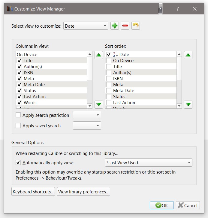FWIW - I access VM from the book list context menu, In the View Manager plugin thread, JimmXinu and I had a long exchange about Date column sorting a couple of years ago, I can't recall the details but it starts about here ==>> https://www.mobileread.com/forums/sh...&postcount=238 Note I am using version 1.3.2 of the VM plugin, it's the only PI I haven't updated, in part because of the problem with unwanted Date sorting. I sometimes click a header inadvertently which initiates an unwanted sort. What I'd like is a toggle or tweak to disable/enable column header click sorting entirely, and simplified VM functionality in the calibre core - no saved search, Virtual library switching etc. BR Last edited by BetterRed; 04-29-2019 at 09:05 PM. |