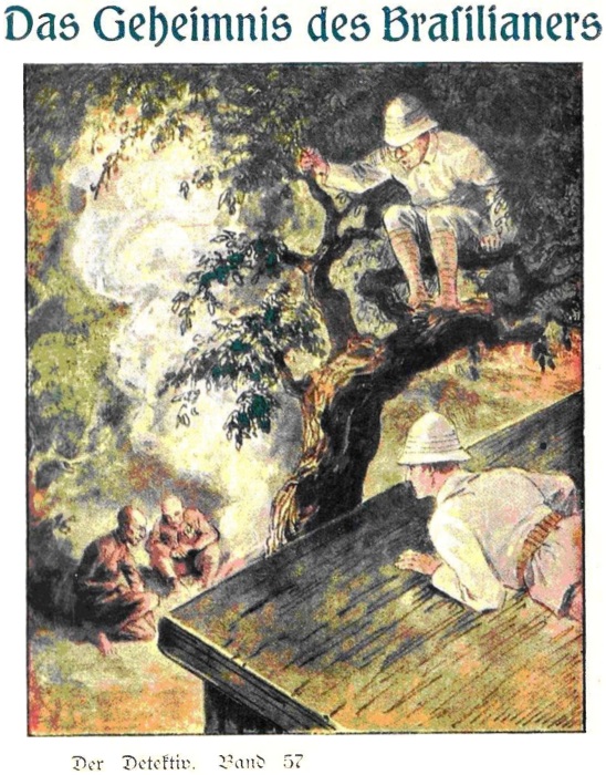 Die von Harald Harst gemietete Motorjacht Atlanta, Besitzer und Kapitän Banfy, lag im Hafen Ponta Delgada der Azoreninsel San Miguel vor Anker. Es war gegen neun Uhr abends. Die Atlanta wiegte sich träge vor ihren Ankerketten. Oben an Deck spielte einer unserer englischen Matrosen Ziehharmonika. Durch die geöffneten Fenster des kleinen Salons der Jacht drang die erquickende Abendluft herein. Wir drei — Harst, Banfy und ich, saßen um den Tisch herum. Ueber uns brannte die elektrische Krone mit ihren drei Birnen. Wir lehnten behaglich in unseren Korbsesseln und rauchten. Vor Harald lag auf dem Tische das alte, abgegriffene Buch — das Tagebuch eines ehemaligen Piraten, wie wir bereits wußten. Es war in spanischer Sprache geschrieben. Aber in den Aufzeichnungen fand sich kein Name, nur immer die beiden Anfangsbuchstaben derjenigen Personen, mit denen der Korsar in seinem reichbewegten Leben zu tun gehabt hatte. Wie dieser Freibeuter hieß, war aus dem Tagebuch in keiner Weise zu ersehen. Jedenfalls hatte er das Haus in der Wildnis im Jahre 1798 als Hauptquartier für sich und seine Bande erbaut. — »Fangen Sie an, Mr, Harst,« gähnte Banfy, »Sie wollen uns doch die wichtigsten Stellen aus dem Buche ins Englische übersetzen und vorlesen. Ich brenne vor Neugier schon.« Die Sträflingsinsel. Nachdem wir sofort nach unserer Rückkehr mit dem Motorkutter, in dessen Kajüte die Leiche Pertinax Chalpins lag, vor der Polizeibehörde in Pernambuco alles Nötige zu Protokoll gegeben hatten, erklärte der inzwischen herbeigerufene Vertreter des Gerichts, daß unter diesen Umständen sofort ein Dampfer nach der Sträflingsinsel Noronha geschickt werden würde, der Edward Selville nach Pernambuco bringen solle. Bis zur Beendigung des Wiederaufnahmeverfahrens müsse Selville freilich noch im Gefängnis bleiben. Es würden ihm alle nur irgend möglichen Erleichterungen seiner Haft gewährt werden. »Wann gedenken Sie den Dampfer in See gehen zu lassen, Sennor?« fragte Harald den Beamten. »Heute abend noch.« »Würden Sie gestatten, daß mein Freund und ich dieses Schiff mit benutzen? Wir möchten uns einmal eine Sträflingsinsel ansehen.« »Der Besuch von Privatpersonen auf Noronha ist zwar verboten. Aber mit Ihren beiden machen wir gern eine Ausnahme. Der Kapitän des Regierungsdampfers wird Befehl erhalten, Sie mitzunehmen, falls Sie es nicht vorziehen, Ihre Jacht Atlanta zur Ueberfahrt dorthin zu benutzen. Ich würde Ihnen dann einen Ausweis für den Gouverneur der Insel mitgeben.« This work is assumed to be in the Life+70 public domain OR the copyright holder has given specific permission for distribution. Copyright laws differ throughout the world, and it may still be under copyright in some countries. Before downloading, please check your country's copyright laws. If the book is under copyright in your country, do not download or redistribute this work.