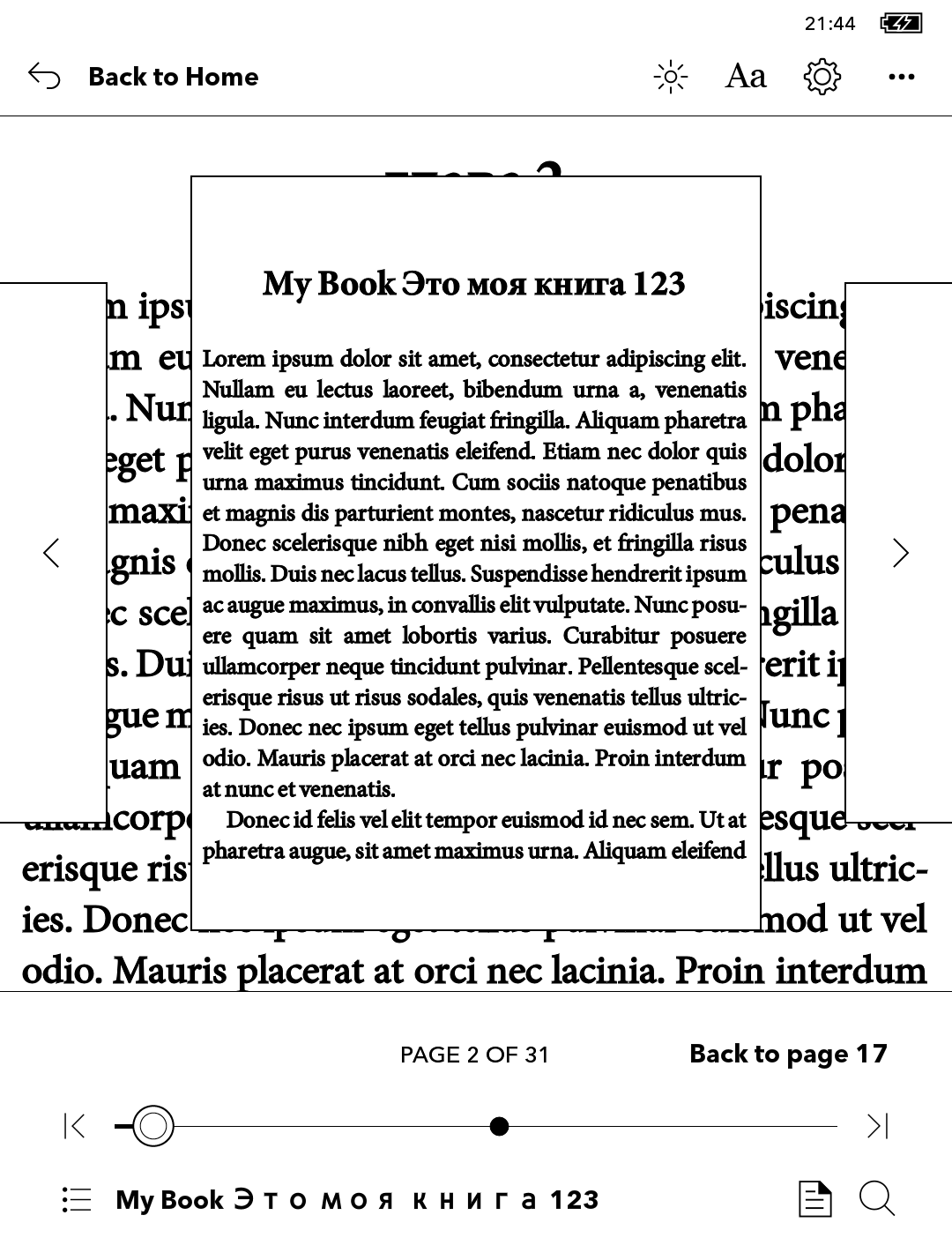 It will be of most use to those who read books in languages not officially supported by Kobo, e.g. Russian, Vietnamese, where Kobo's default Avenir font is a poor choice for displaying the necessary unicode characters for chapter names. It can also be used by those who just want to change the scrubber's cosmetic appearance. Part 1: Customise these 3 buttons: - Left & Right 'Back to page nnn' - Current chapter name (bottom left, next to TOC icon)