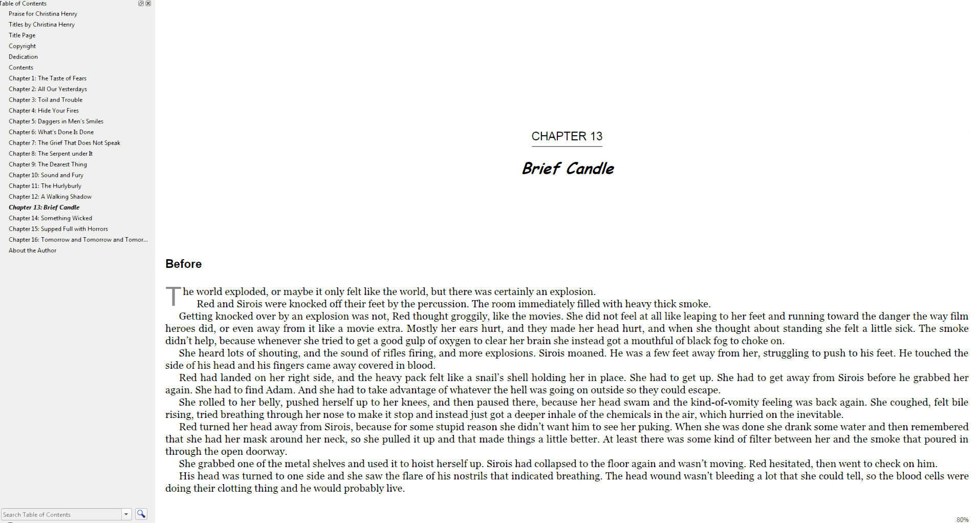I just tried restoring down the table of contents window: it seems to restore the sharp text in the table of contents, but the main text remains blurry. See the attachment.