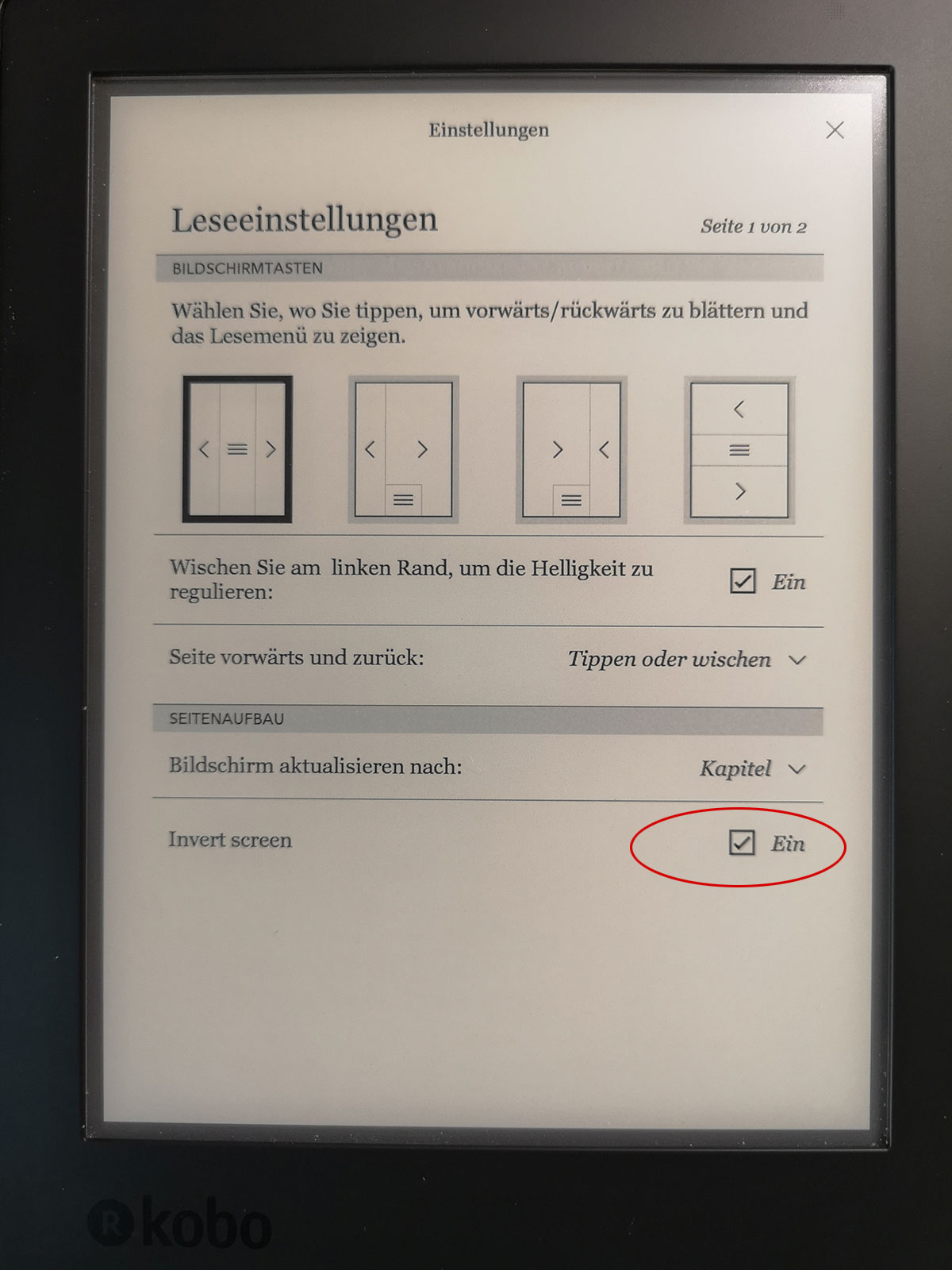 Night mode Kobo H2O?