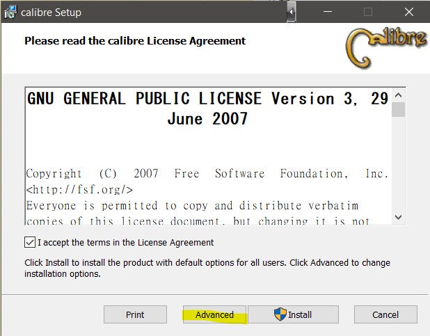 the calibre program is installed only on disk C not on disk d? how to install on dis