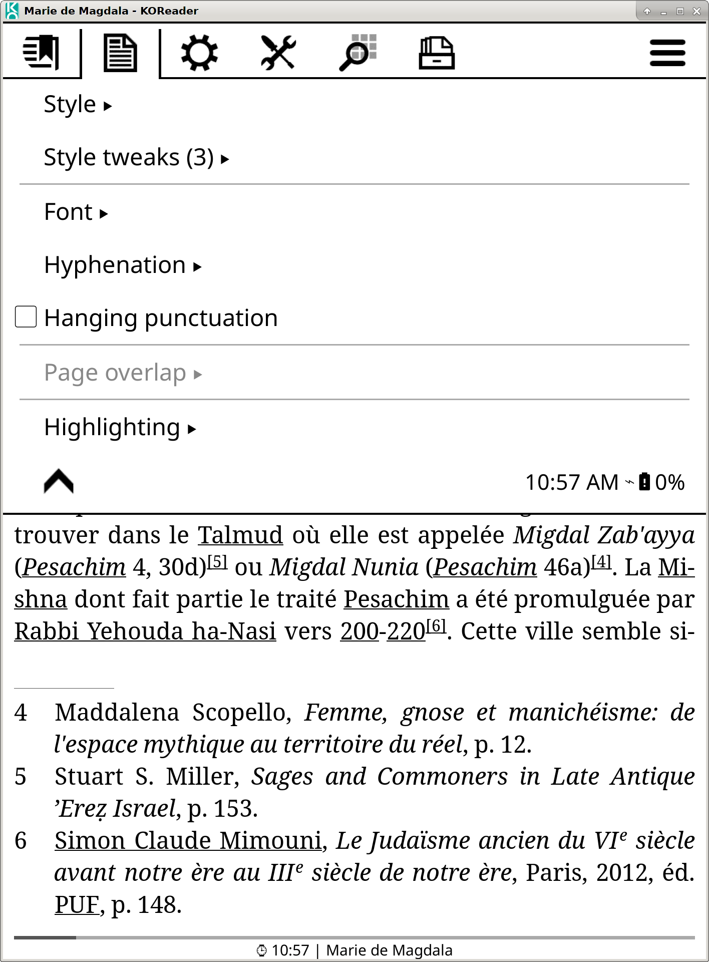 In French, it's written "Ponctuation sans justification" which is quite clear indeed... And btw, - I just found how to get pop-up notes with a standard ePub - I just found that dropcaps are displayed nicely (with "web" mode rendering only!) but "hanging punctuation" does not like them, so for this tiny use case, a choice has to be made. Amazing Koreader !!! Last edited by roger64; 03-04-2020 at 07:17 AM. Reason: does not like |