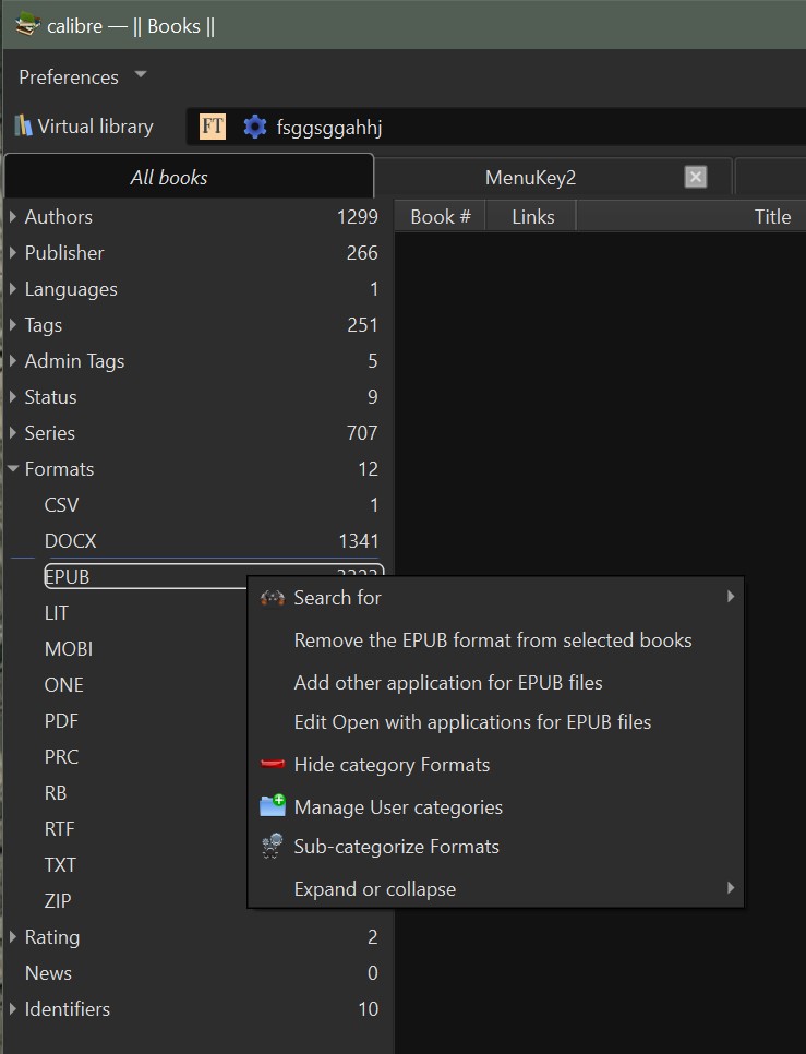 You can add a program to a file type Open With list thus: Right click on the file type, e.g. EPUB, in the Book Details panel and select Open EPUB with... Added: You can add & edit Open with programs in the Tag browser: This will present a list of previously assigned programs, Click the Browse computer for program, which will open up a file manager open file dialogue, browse to the program you want - such as Sigil That's how to configure - now how to make use of it For frequently used programs I assign a keyboard shortcut to the program: For occasional use programs I use the View specific format tool, where there's same the Open XXXX with... option This is what I have for EPUB in my Books library The blue ebook viewer is from a portable 3.48 (I changed its icon to differentiate) BR I got fed up with posting this response, in future I'll just post a link Last edited by BetterRed; 04-21-2025 at 07:38 PM. |