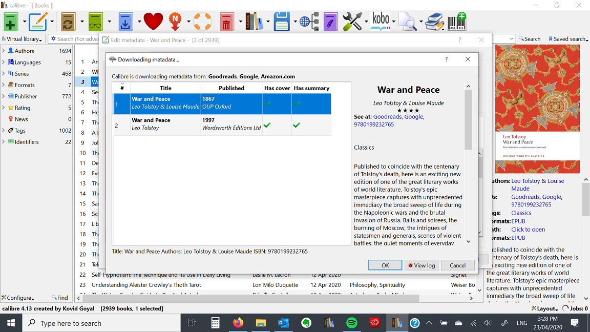 ![]() Just using the default metadata plugins... I noticed the (CTRL + D) match is the second ISBN match from the manual search. Here are some screens... Moderator Notice