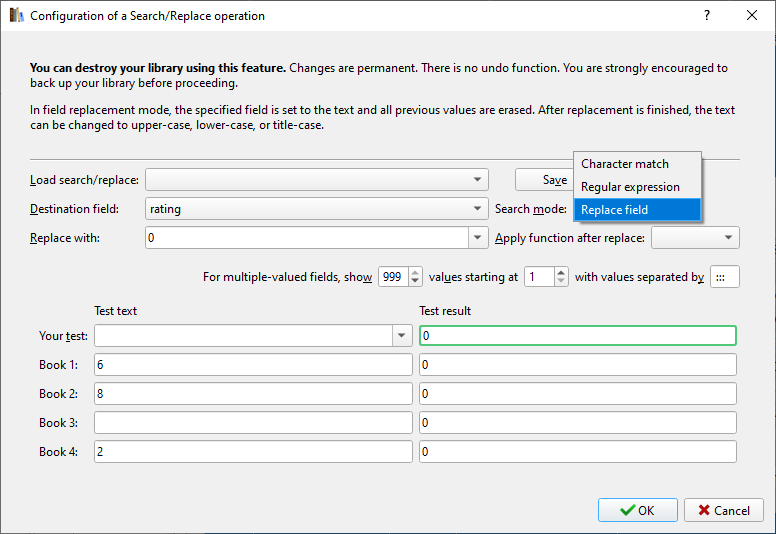 To use a "Shared Search/Replace operation", create and save a operation in the Calibre combo box, or select one that already exist. Important, don't edit any field after having select the "Shared operation" or the link will be broken. To edit a "Shared operation", it will have to be re-registered with the same name in the Calibre saved Search/Replace system. Once the "Shared operation" corrrectly save, the name of this one will appear in operations list. Special Notes: