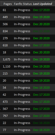 It's intended to make it easier to know at a glance which of my "recently updated fanfics" (>7daysago) is the newest: To make it easier to apply to other columns, how would I combine this into a single advanced rule while keeping the order of precedence? Thank you! |