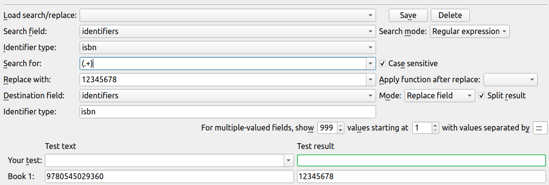 The books I want to edit all have same ISBN, but in the Ids metadata is empty for most of them. I want to bulk set the shared ISBN to all the books. Is it possible? I tried the search and replace tab in the bulk edit window. I've set the Search field to Identifier and type to desired one. I put nothing in Search for, and I put the ISBN in Replace with, but it did not work. Thanks |