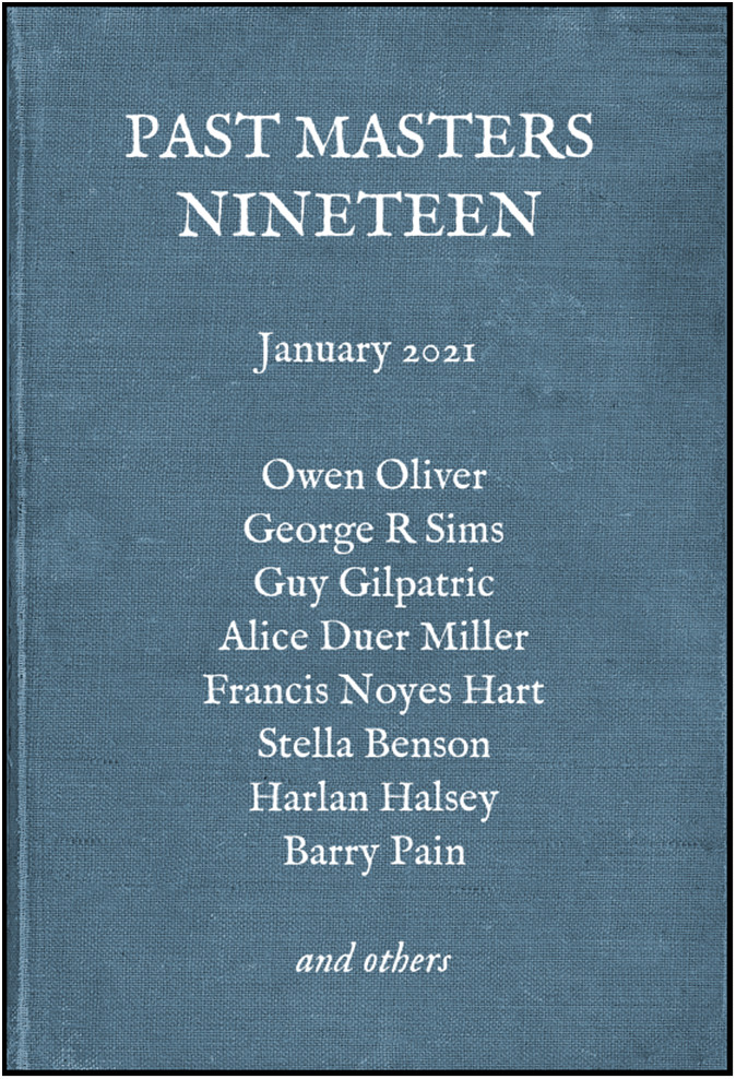 The 19th in a series of anthologies of stray short stories mostly gathered from newspapers, magazines and the like. Includes a cumulative index of all Past Masters anthologies to no 19. Story 2 is a complete "dime novel" of some 20,000 words.