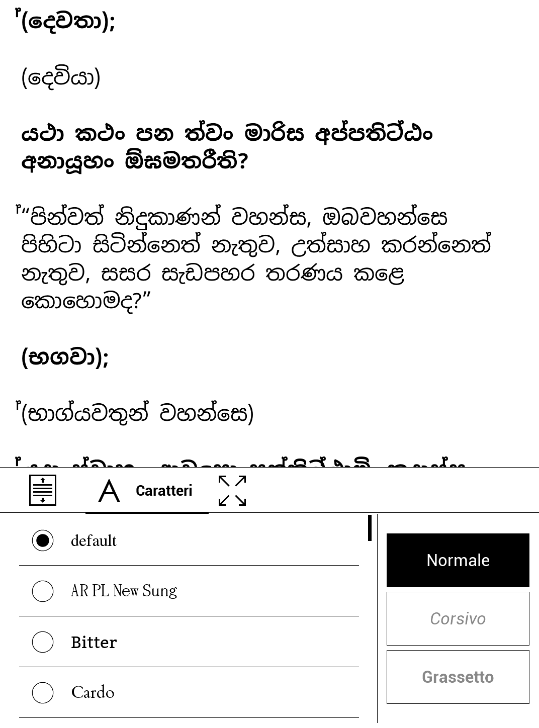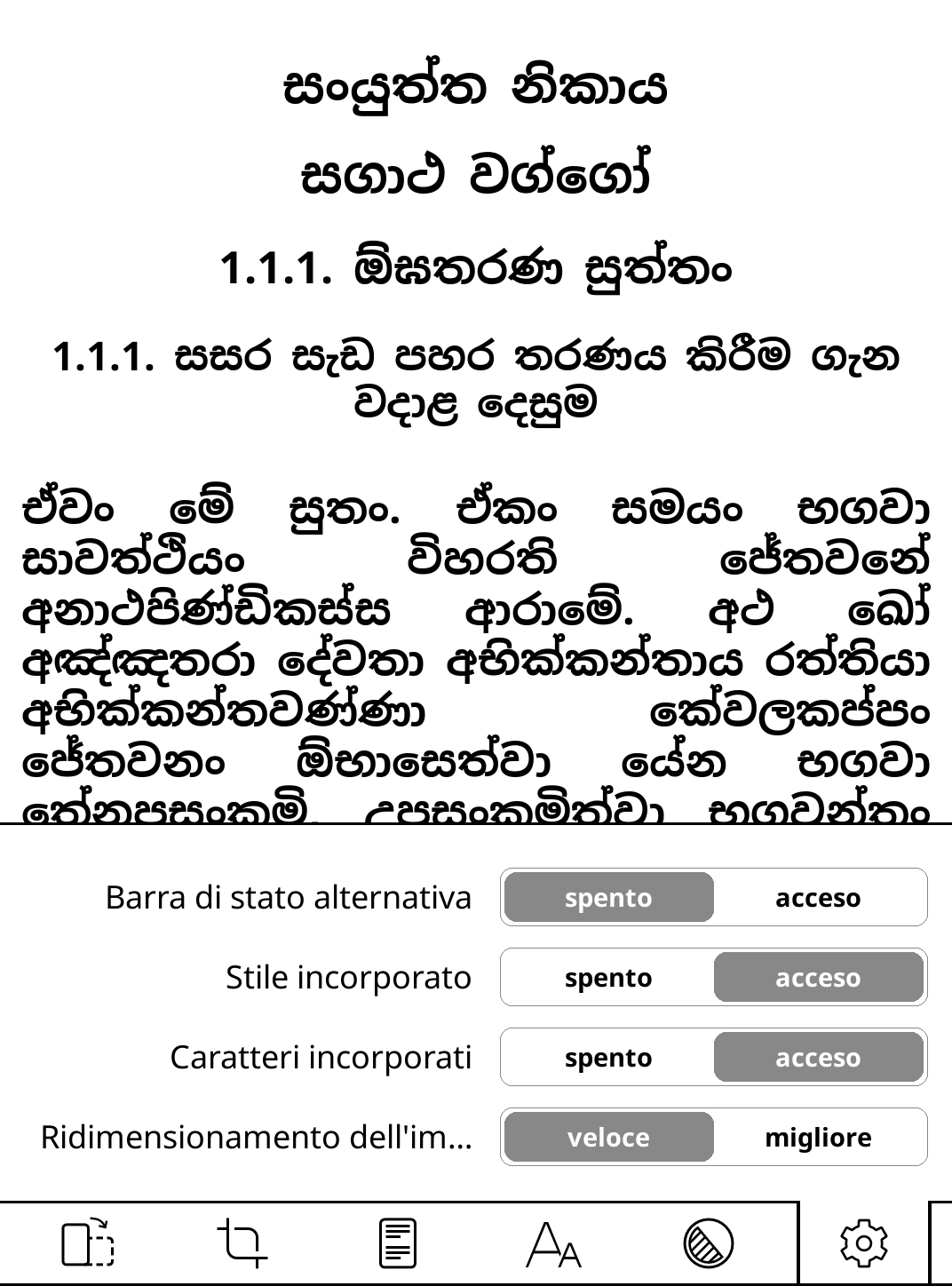 With the kindle I got only as far as looking at the text in the pages, but the table of content doesn't show properly as seen on https://ibb.co/pWwd11D. Others tried with the Kobo as mentioned at https://www.mobileread.com/forums/sh....php?p=4104409 but also wasn't too successful. I would like to know if the pocketbook (especially Touch Lux 5) is able to show the text in the book and the table of contents properly. Can someone who has the device check this for me and attach some images of what you see here? The book with ToC is "sn1-excerpt" at https://drive.google.com/drive/folde...ygLi67_F9Y_X1N. I would also like to see how the browser shows https://pitaka.lk/main/?n=15100 website if possible. Thanks in advance! |