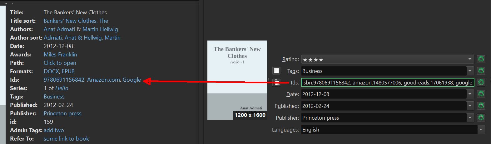 But, metadata download also has options for what is accepted. There is an overall configuration of what will be updated for the book. And each metadata source plugin has options for what will be taken from that source. That will affect the metadata that gets updated. But, the identifiers will always be updated. |