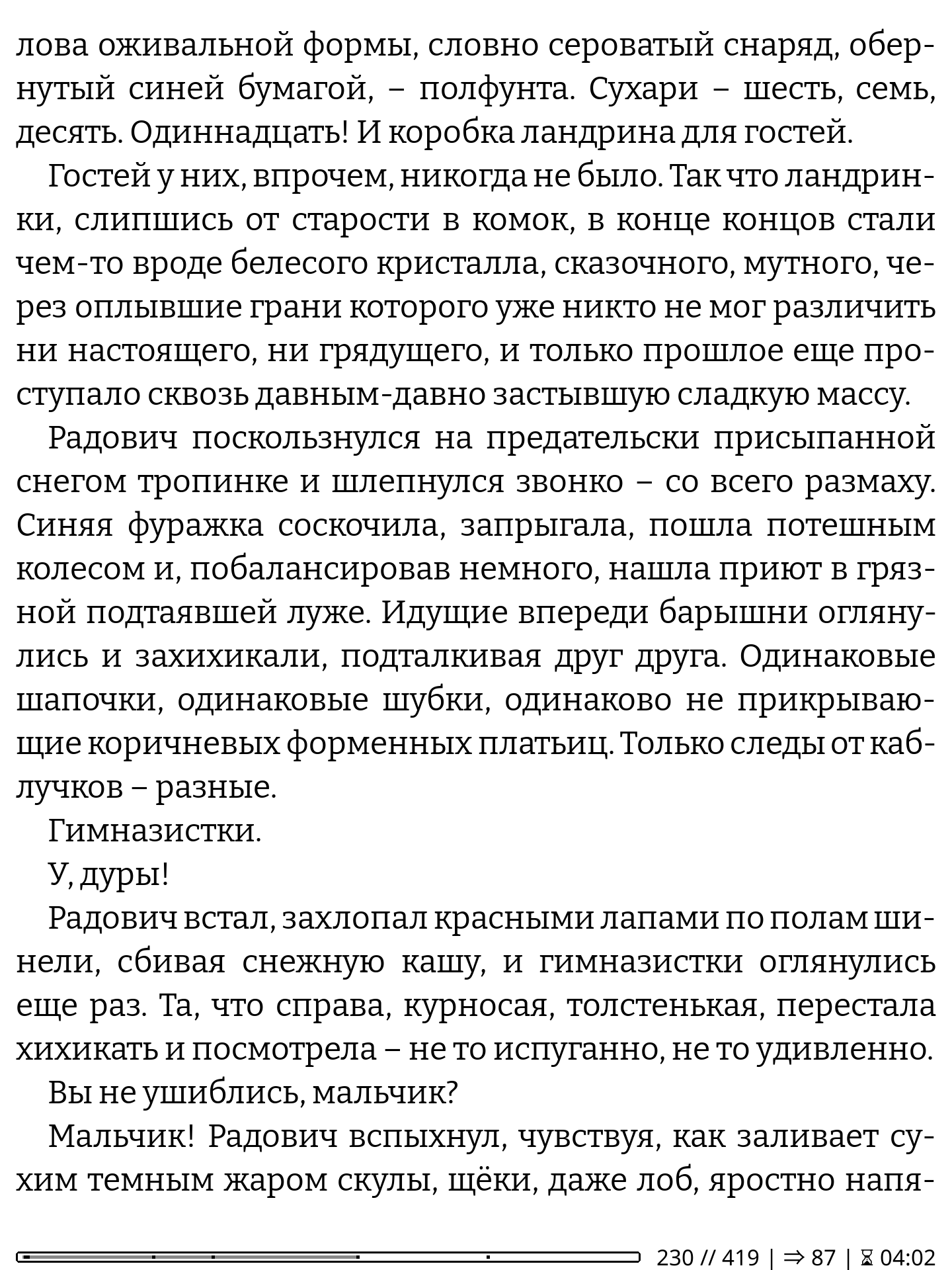 So I was annoyed with the rendering of some books, where the gap between the last line and the status bar was way too noticeable. "Reclaim bar height from bottom margin" helped, but I still do not quite understand the logic. The way I read in the manual I should see the status bar overlap (at least partially) the last line when it is on. In my case I see a normal gap of about .3 line height. When it is off I see about 1.5 or almost 2 lines gap. I understand the "Bottom Margin" and some font features affect this too. I have Bottom Margin at the default 15. I also notice this more with some fonts than with others |