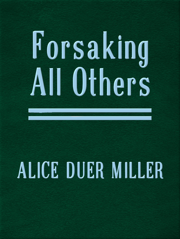 Forsaking All Others, by Alice Duer Miller (1874–1942), was first published in 1931. This ebook is in the public domain where copyright is “Life+75” or less, and in the USA.