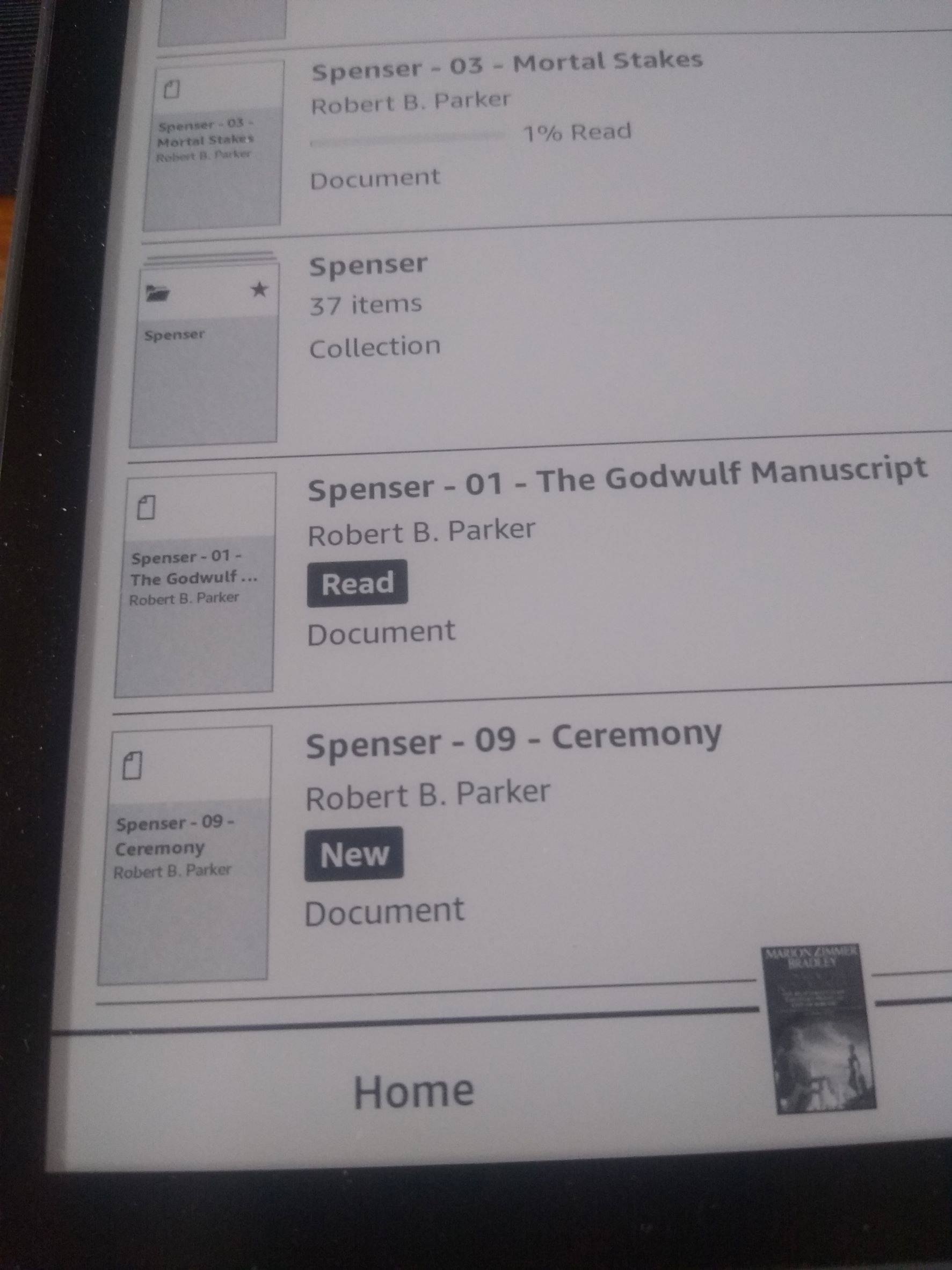 What I don't understand is why I'm seeing the collected books showing in the list? I've attached a picture of what I'm seeing. Notice the collection entitled "Spenser". All of the books in the Spenser series are in that collection, but they are also showing outside of the collection. What is the point of even having the collection if I have to wade through all of my books in order to find the next one I want to read??