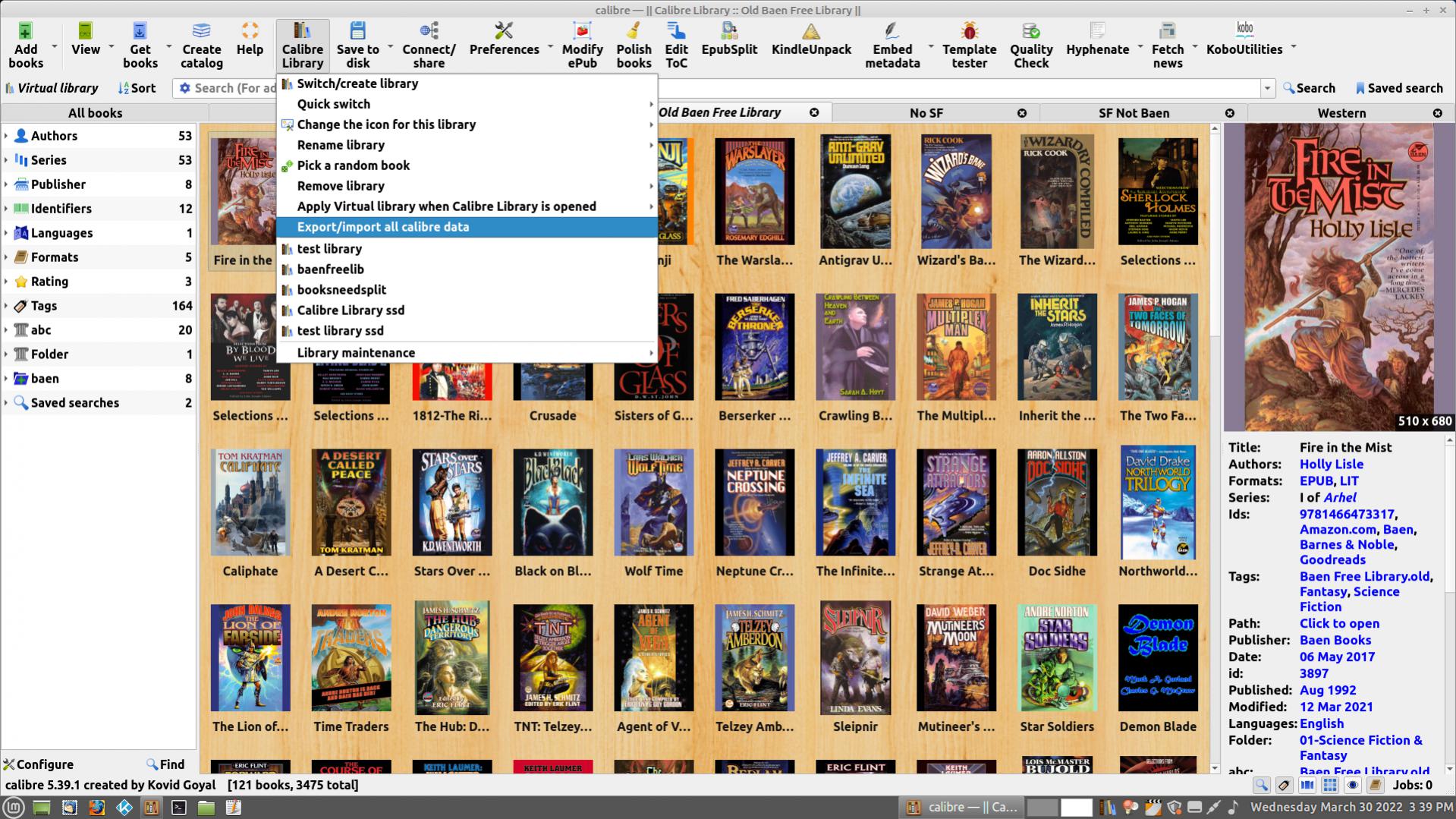 I am running Calibre on a Mac and want to switch to Linux. Installation of the Linux version went fine, also I could copy the "Calibre" folder from the Mac to the Linux machine to have my settings also in the new computer. I then exported all Calibre data from the Mac but could not import them into the Linux Calibre as there is no top menu bar like the Macs have and thus no according option. Also: The one book Calibre comes with, is the Calibre introduction. When I opened it in the Linux Calibre, the book's metadata did not show the fields I added manually on my Mac version. My two questions would be: How can I import my books into the Linux version and will the extra fields I added show up too? Thanks for helping! |