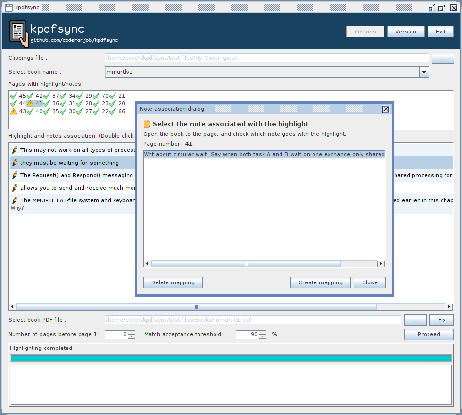 [kpdfsync] Annotates a PDF file with highlights and notes from 'My Clippings.txt' fil