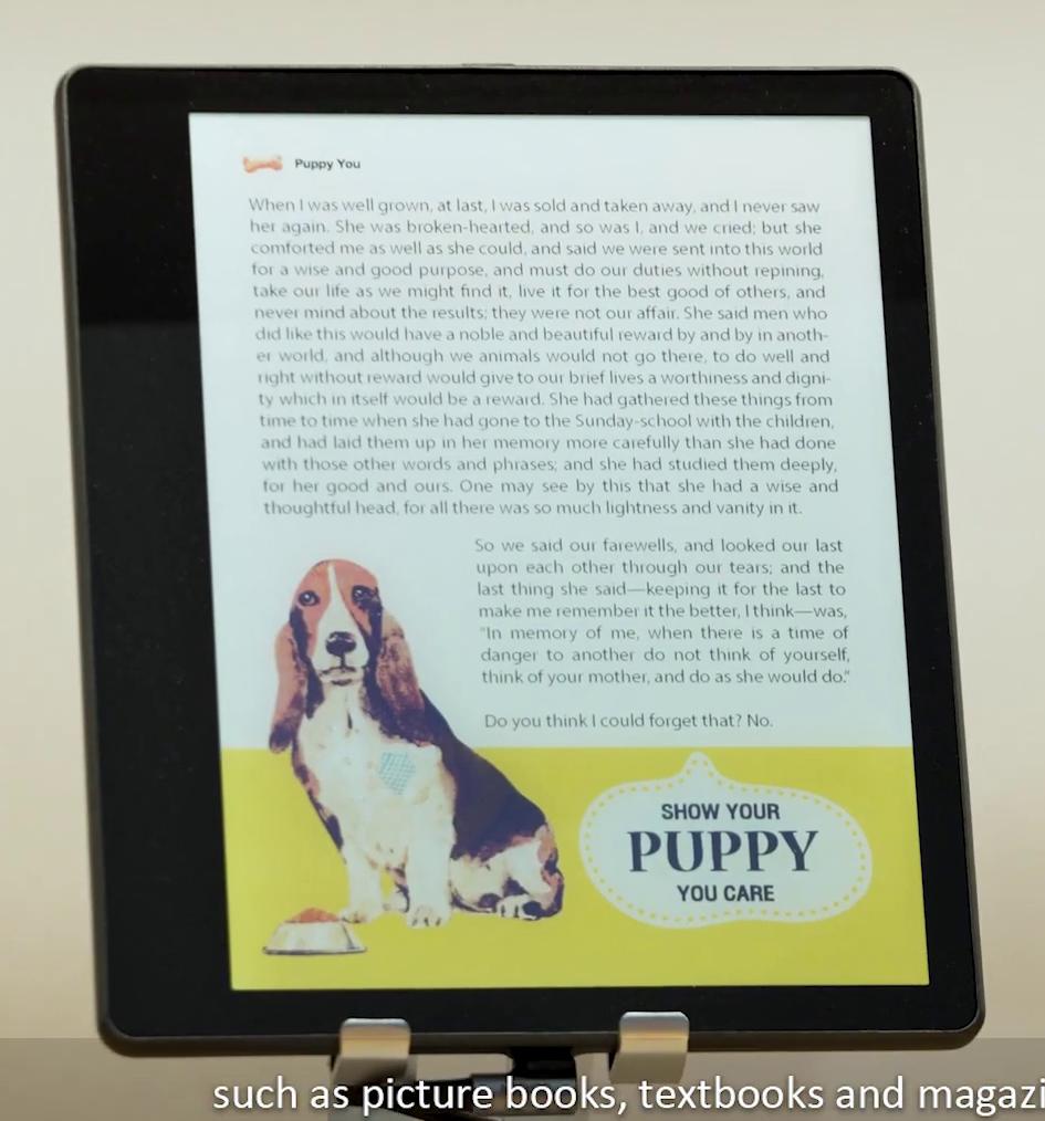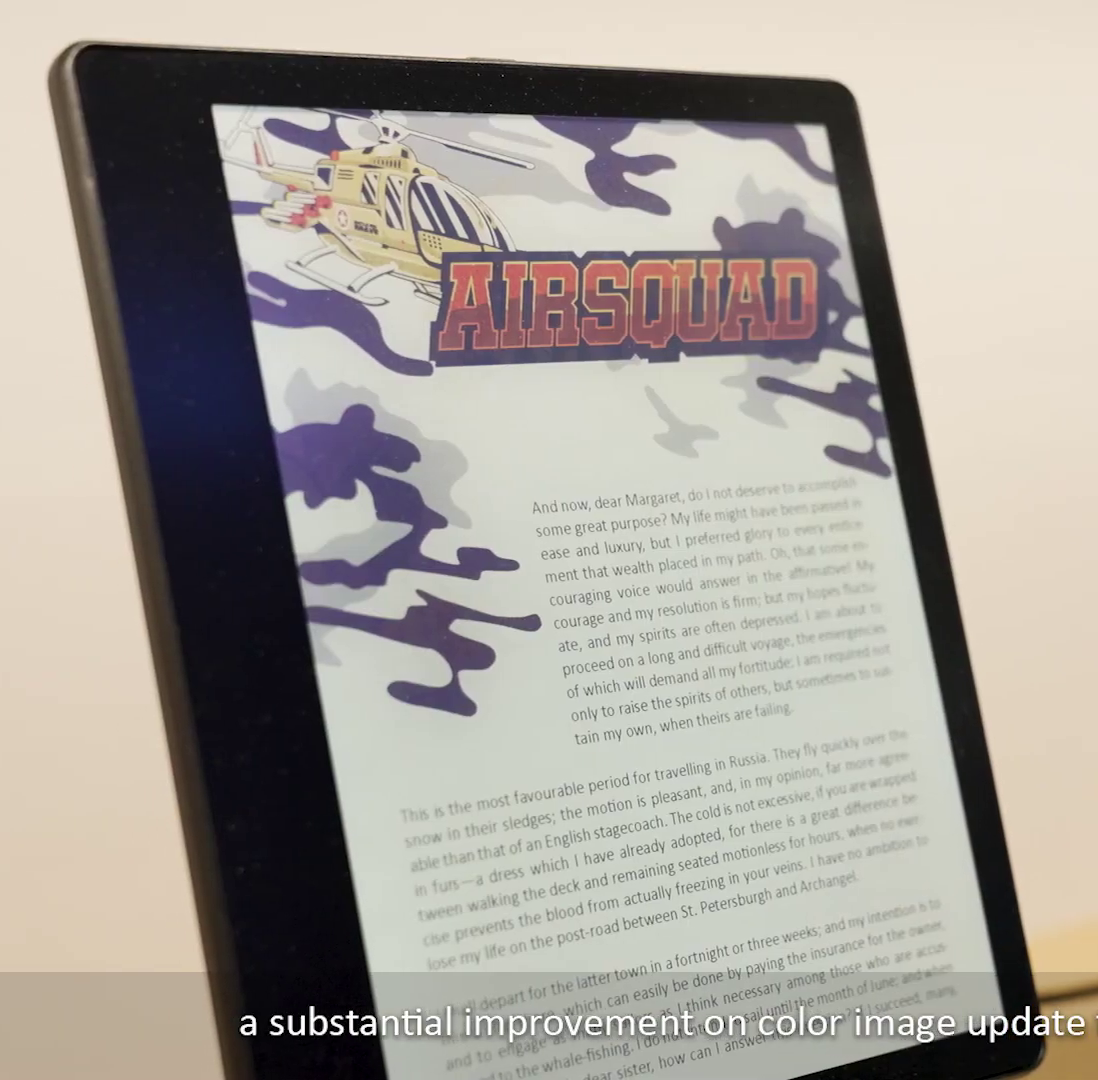 And 300dpi colour... it's a big improvement on the colour displays that use a colour filter in front of a B&W display. I would be very tempted if a Kindle came out using this display, even if just for the book covers! |