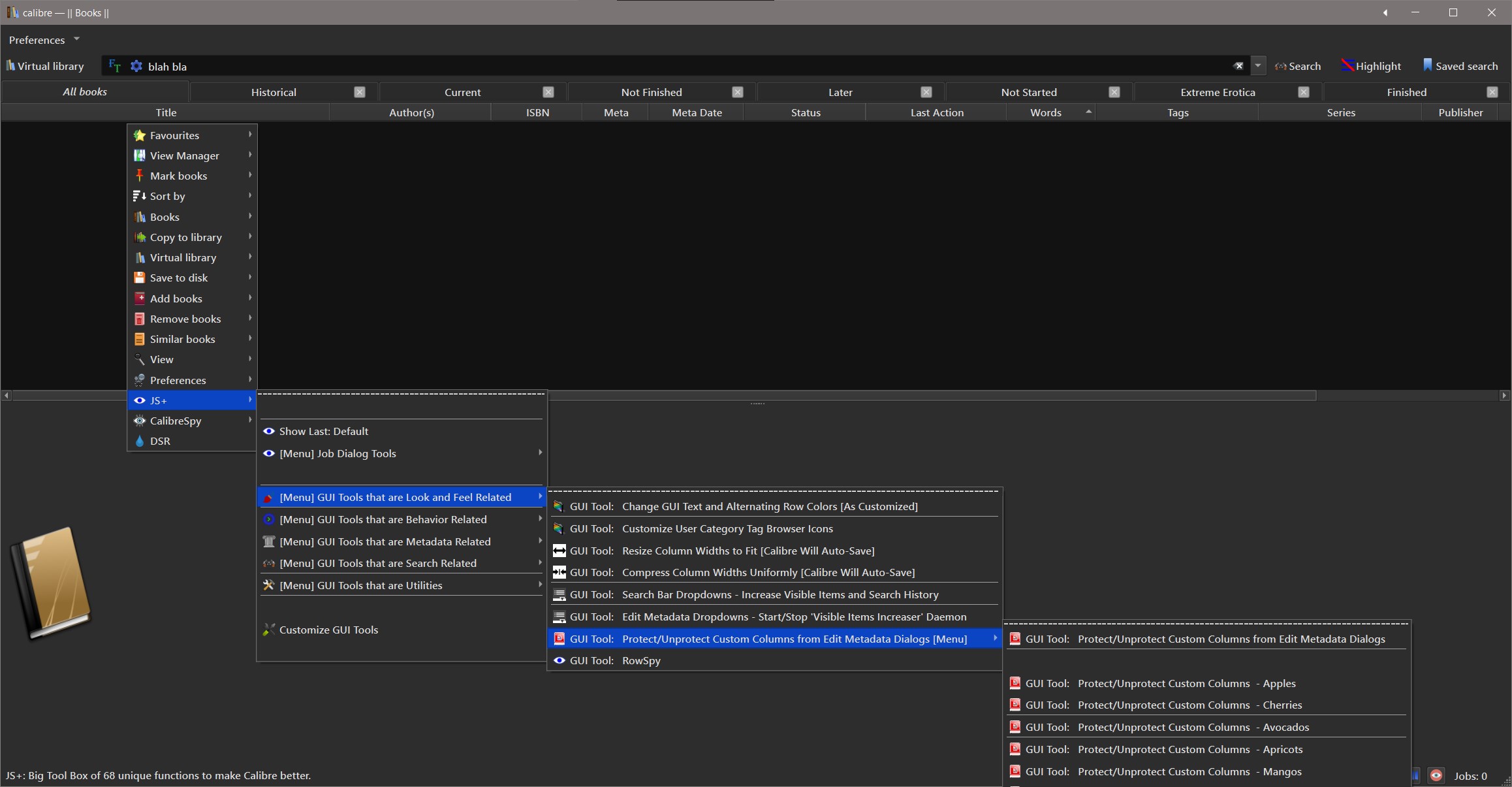I'm intersted to develop a "lock plugin", as seen in this post : https://www.mobileread.com/forums/sh...k+modification I would like to add an option to "lock" a book to avoid modifications on author and title, in order to conserv the folder hierarchy. I read the documentation to create this new action, but how to make this fields readonly in the "Edit metadatas" dialog from my plugin ? Thank you in advance ![]() PS : I know, in a second time i have to lock authors rename... If you have informations to lock in contextual menu... |