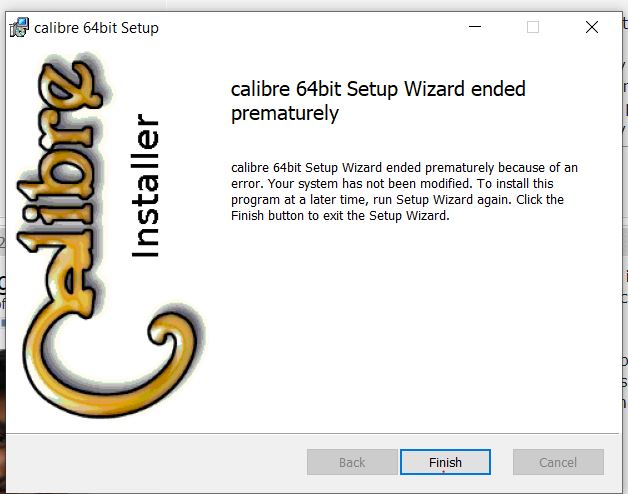 Another possibility is permission errors. If you are running Windows 10 64bit or better, try right-clicking on the calibre installer and selecting Run as administrator. |