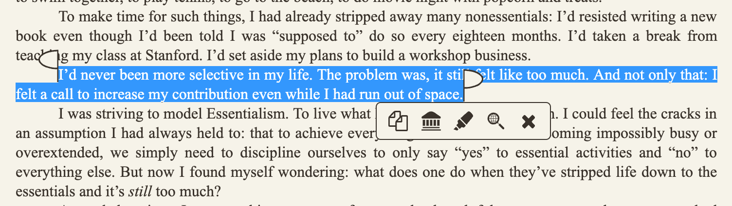 The title of this topic is imprecise, should be "Selection of text invisible until creating highlight", there is no such problem in Safari on desktop or in the viewer app (the blue indicate the selection which is not visible on the mobile) For example, on desktop, until the annotation is created I see the selection, this is not the case for the iOS/IPadOS browser |