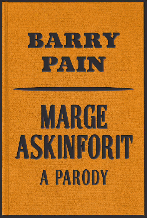 A rollicking parody of Margot Asquith: An Autobiography (1920), in which Pain’s character, Marge (short for Margerine), beguiles us with the most personal details of her dysfunctional family, and delights in relating every cringing, if not wholly accurate, minutiae of her exciting private life. (—Nigel Boydell at Librivox) ============= Barry Eric Odell Pain (28 Sep. 1864 – 05 May 1928) was an English journalist, poet, humorist and writer. During his lifetime, he was perhaps best known as a writer of parody and lightly humorous stories, but now is also noted for his tales touched with fantasy, horror, and the supernatural. He also wrote stories of mystery and suspense. His humor has been characterized by some modern critics as “a surreal forerunner to Monty Python.” ============= Marge Askinforit was first published in 1920. This book is in the public domain where copyright is “Life+90” or less, and in the USA. . This work is assumed to be in the Life+70 public domain OR the copyright holder has given specific permission for distribution. Copyright laws differ throughout the world, and it may still be under copyright in some countries. Before downloading, please check your country's copyright laws. If the book is under copyright in your country, do not download or redistribute this work.