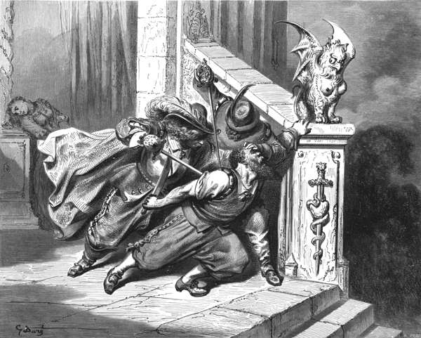 Das Hauptgewicht liegt ohnedies auf den einzigartigen Illustrationen des genialen Gustav Doré; und Hartmann hat mindestens im Bezug auf diese Recht mit seiner ironischen Perspektive, denn betrachtet nur das letzte Bild (siehe unten!), auf dem einer der Brüder der von Blaubart bedrohten Gattin diesen Serienmörder ersticht, was die ›Drachensphinxeule‹ auf der Balustrade mit einem missbilligenden Blick quittiert. Da verschmerzt man es leicht, dass Hartmann sich beim "Rotkäppchen" nicht an den Schluss der Vorlage hielt: nachdem der Wolf das Kind gefressen hat, folgt hier nur noch eine ›Moral von der Geschicht’‹. Die Nacherzählung greift hingegen zurück auf die bereits 50jährige deutsche Tradition, das Märchen mit einem Happy end zu schließen. Das im Original großformatig erschienene Werk (Erstauflage 1867, hier in der dritten Auflage, mit 70 Textseiten, einschließlich der Abbildungen 175 Seiten) in ein eBook zu transformieren, das auf einem 6"-eReader noch akzeptabel aussieht, bedeutet, dass die Erscheinungsform und die Bedienung anders gestaltet werden müssen als bei der Printausgabe. Ich habe, wo es um Illustrationen im eBook geht, hier schon verschiedentlich angemerkt, dass mich das Auseinanderreißen des Layouts, das bei einer relativen Reproduktion unausweichlich ist, wenn Bilder eingefügt werden, sehr stört; ein gedrucktes Buch, das so aussähe, würde man man im Papiercontainer entsorgen — aber das moderne eBook soll so aussehen dürfen? Es muss nicht so aussehen. Ich habe bereits 2012 am Beipiel von »Friedrich Nicolai: Sebaldus Nothanker« ein anderes Verfahren erprobt, das die Integrität des Layouts bewahrt und dennoch die Abbildungen ganzseitig zur Ansicht bringt. Das vorliegende Märchenbuch erklärt auf der Edit-Seite, wie man mit dem gewählten Verfahren umgeht, in das ich auch die Initialen mit einschloss, aus dem einfachen Grund, weil sie bei dem großformatigen Druck so groß sind, dass sie bei der nötigen Verkleinerung auf ein 6"-Display nicht mehr hinreichend differenziert zu erkennen wären; über die jeweiligen lateinischen eBook-Initialen kann man zur Ansicht der Original-Initialen gelangen. Das eBook wurde mit Hilfe der GoogleBooksKorrekturlesungmethode entwickelt. Das Cover ist der Original-Buchdeckel der Vorlage. Die Seitenzahlen sind (verkleinert/grau) eingepflegt. Viel Spaß mit diesem vergnüglichen Märchenband wünscht Euch Bruce This work is assumed to be in the Life+70 public domain OR the copyright holder has given specific permission for distribution. Copyright laws differ throughout the world, and it may still be under copyright in some countries. Before downloading, please check your country's copyright laws. If the book is under copyright in your country, do not download or redistribute this work.