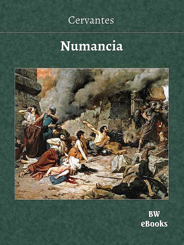 Es ist ein ungemein wuchtiges Werk; Thema ist der Fall der spanischen Stadt Numantia im Jahr 133 v.u.Z., bewerkstelligt durch den jüngeren Scipio. Die Römer kommen nicht gut weg in diesem Trauerspiel; ihren Sieg verdanken sie (auch historisch) nicht ihrer Kampfkraft, sondern einer Hungersnot der Belagerten und deren Willen, den Freitod römischer Versklavung vorzuziehen (siehe Cover). Auf deutsch hat diesen Text als erster der romantische Dichter Friedrich de la Motte Fouqué 1810 übersetzt; dabei ist er dem Original auch darin gefolgt, Kreuz- und umschließende Endreime für die Verse zu verwenden. Was in den romanischen Sprachen bekanntlich leicht fällt, kann im Deutschen, wenn dazu noch der fremdsprachliche Sinn erhalten bleiben soll, zu den notorischen ›Reim-Zwangsstörungen‹ führen. Obwohl Fouqés Übertragung auf jeden Fall hohen Respekt verdient, habe ich deshalb für diese Ausgabe die reimlose Übersetzung von Leberecht Günther Forster gewählt, die 1826 im Rahmen einer Cervantes-Gesamtausgabe erschien. Sie enthält am Ende eine kurze Biographie des Dichters. Wie man Ende April 2023 auf diesen scheinbar fernen Text gerät, liegt nahe genug. Das Cover macht Gebrauch von einem Ausschnitt aus dem Gemälde ›Numantia‹ (1880) des spanischen Künstlers Alejo Vera. Die Bereitstellung des Textes fußt auf der GoogleBooksKorrekturLesung. This work is assumed to be in the Life+70 public domain OR the copyright holder has given specific permission for distribution. Copyright laws differ throughout the world, and it may still be under copyright in some countries. Before downloading, please check your country's copyright laws. If the book is under copyright in your country, do not download or redistribute this work.