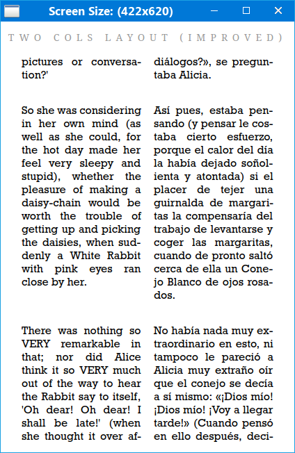 Two Cols (Improved).epub Here there are two screenshots: I think the code employed is easy to understand but if there is any doubt, gladly I will answer about the subject. |
