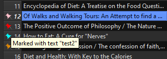 I noticed a little pin on the left side today, it says "marked without text" when I mouse over it. I searched the calibre site and forum and found no reference to this, nor on Google.