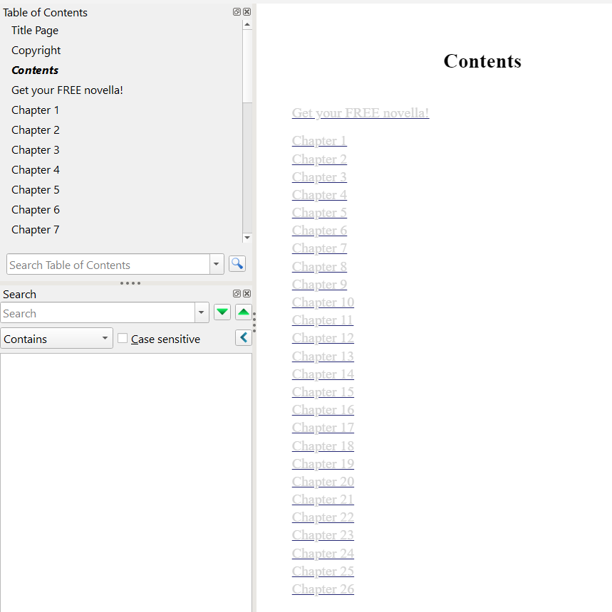 This is nothing to do with calibre but rather with the ebook's internals. I would suggest opening the ToC based on the index/navigation document and using that instead (right click in the book and then click on Table of Contents). Edit: I've attached an image where the colour for links was set to a light grey. Last edited by DNSB; 09-12-2023 at 07:15 PM. Reason: Edit: attach image |